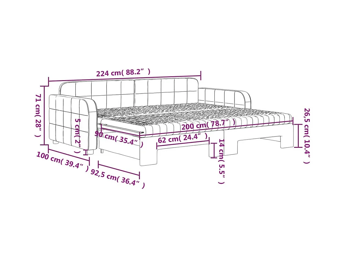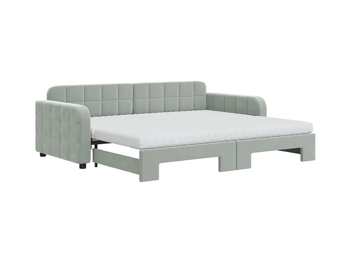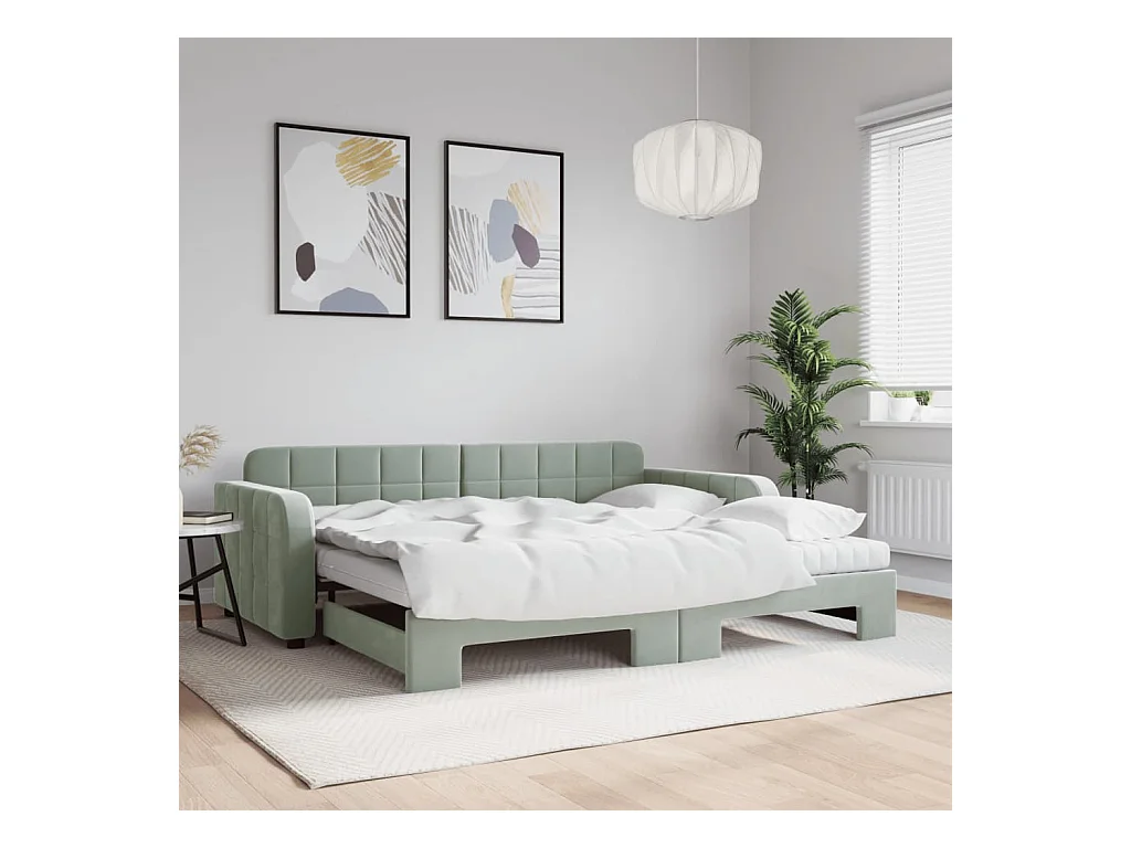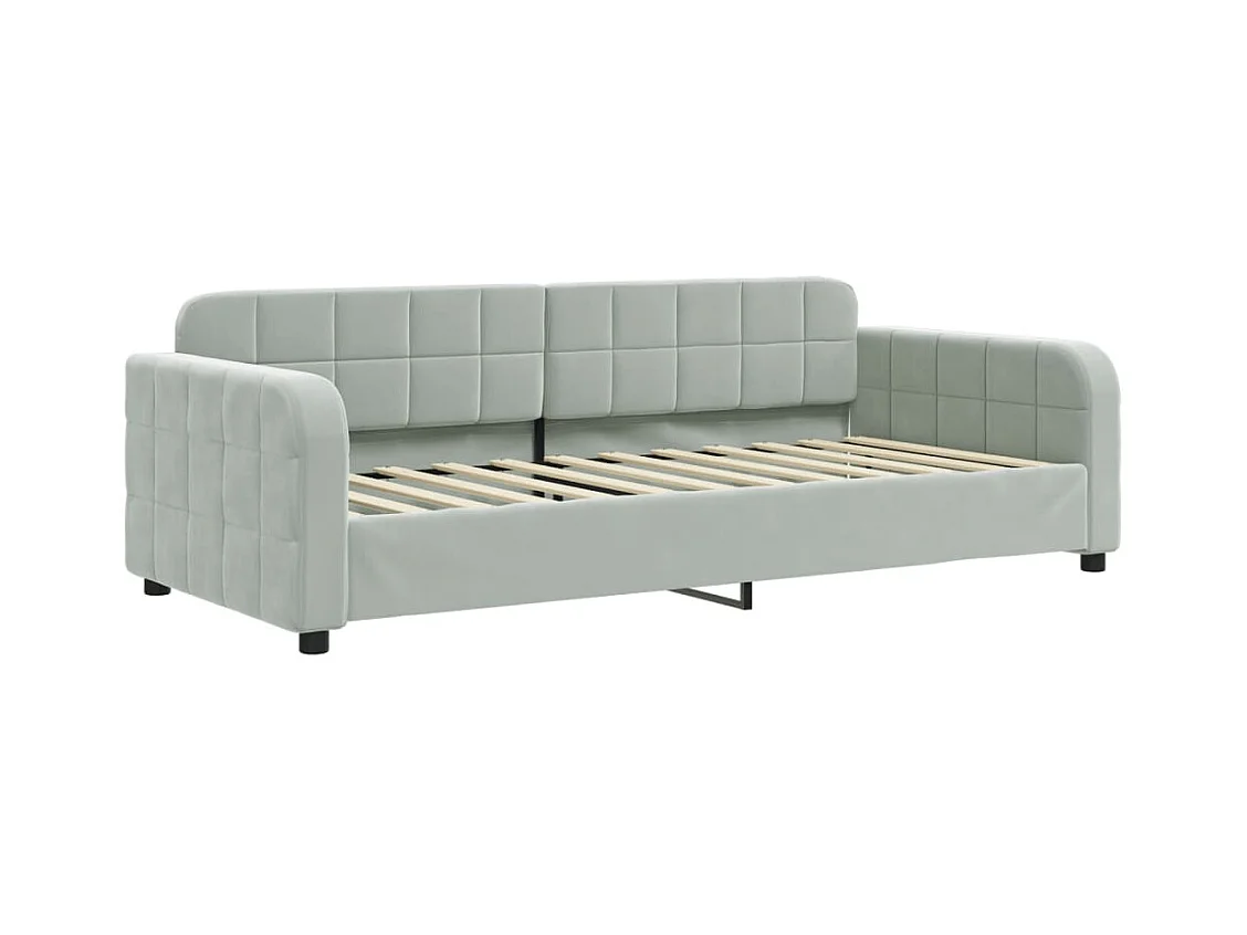 Lit de jour avec gigogne et matelas gris clair 90x200cm velours