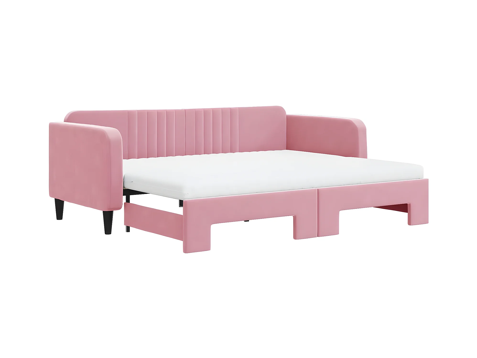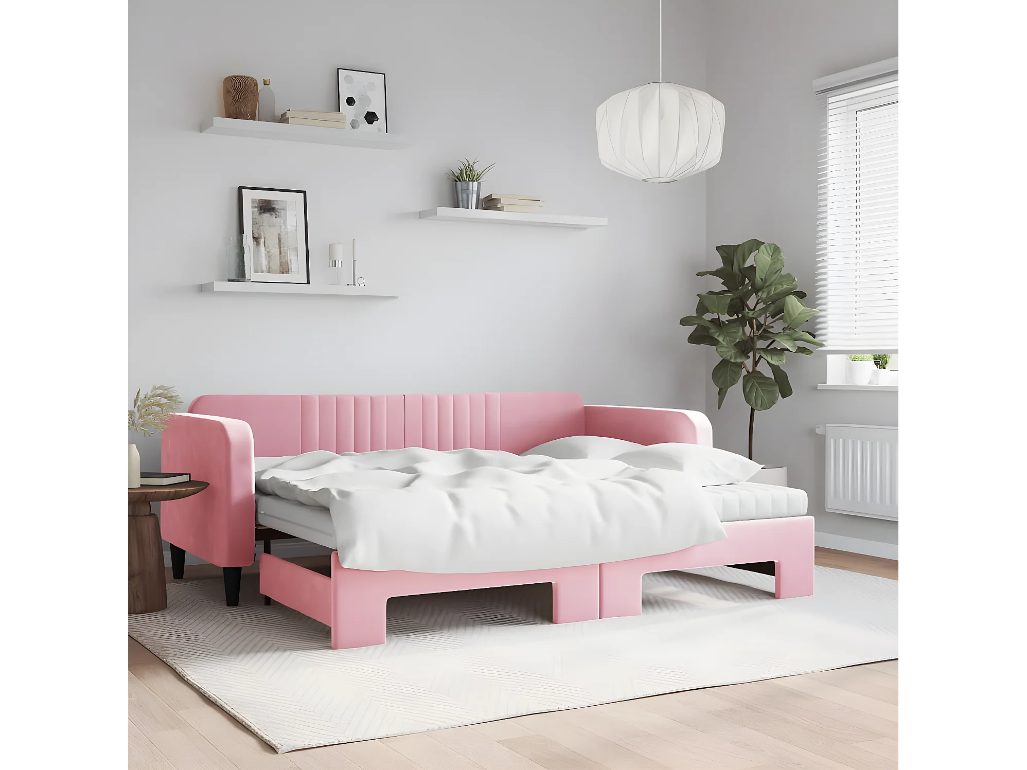 Lit de jour avec gigogne et matelas rose 90x200 cm velours