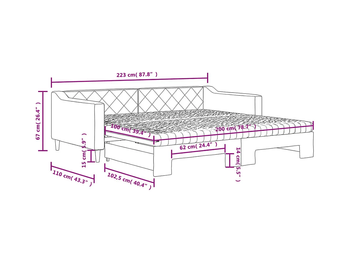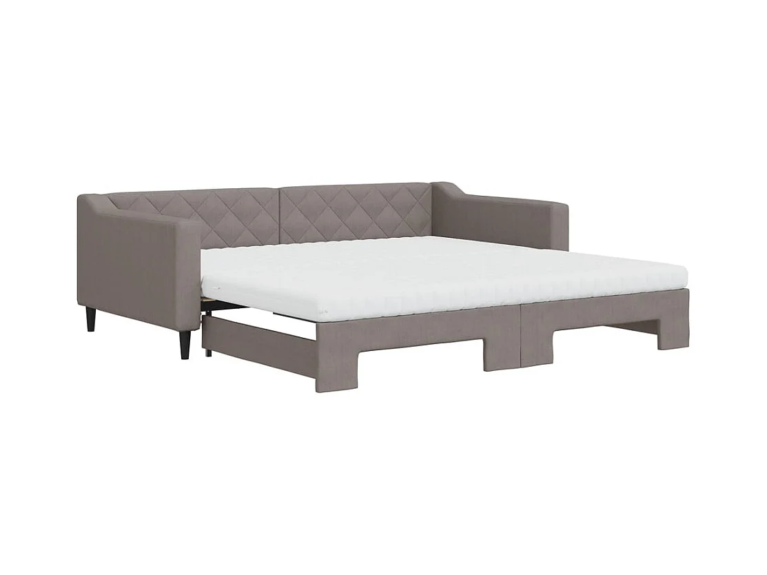 Lit de jour avec gigogne et matelas taupe 100x200 cm tissu