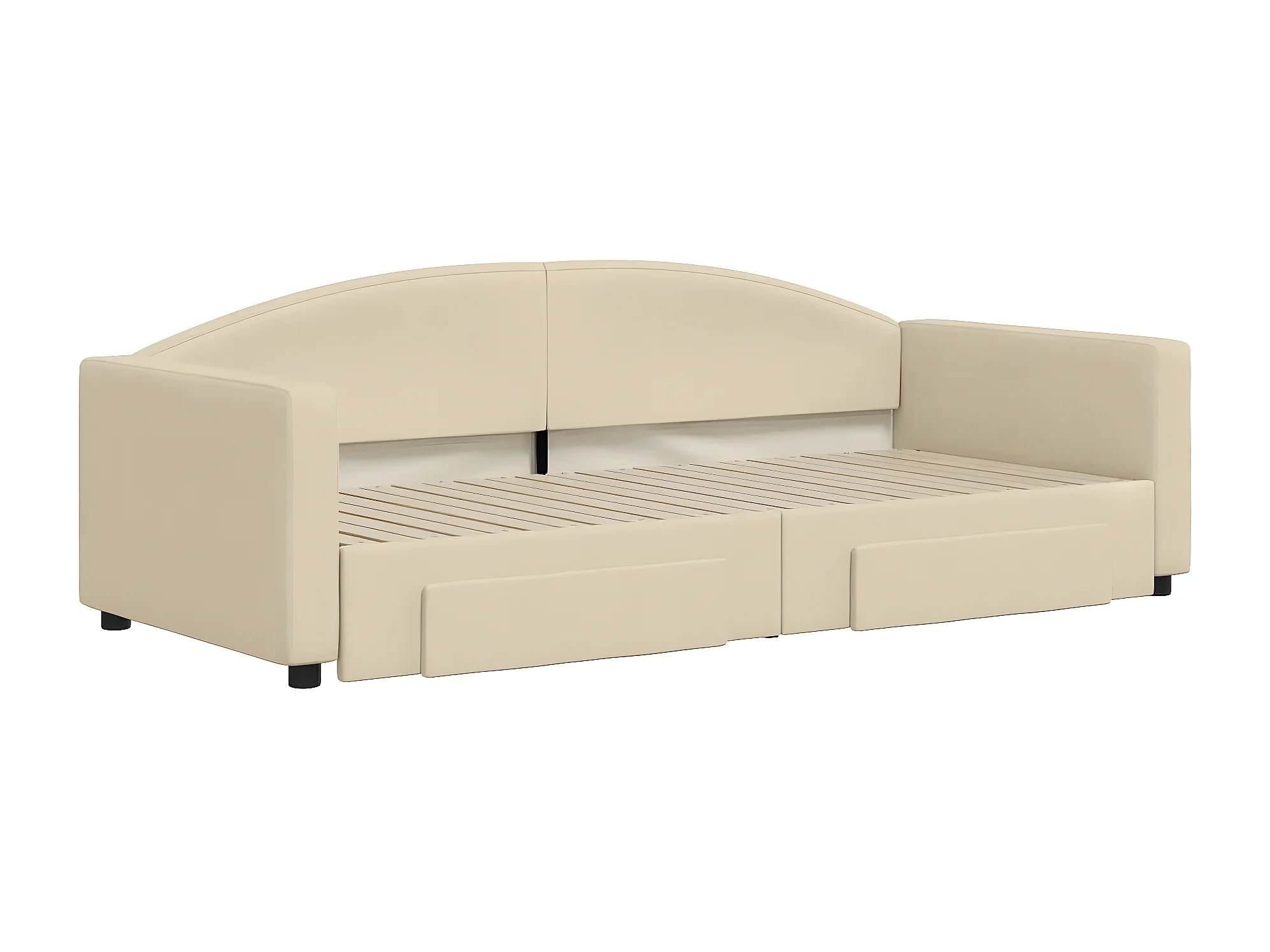 Lit de jour avec gigogne et tiroirs crème 90x200 cm tissu