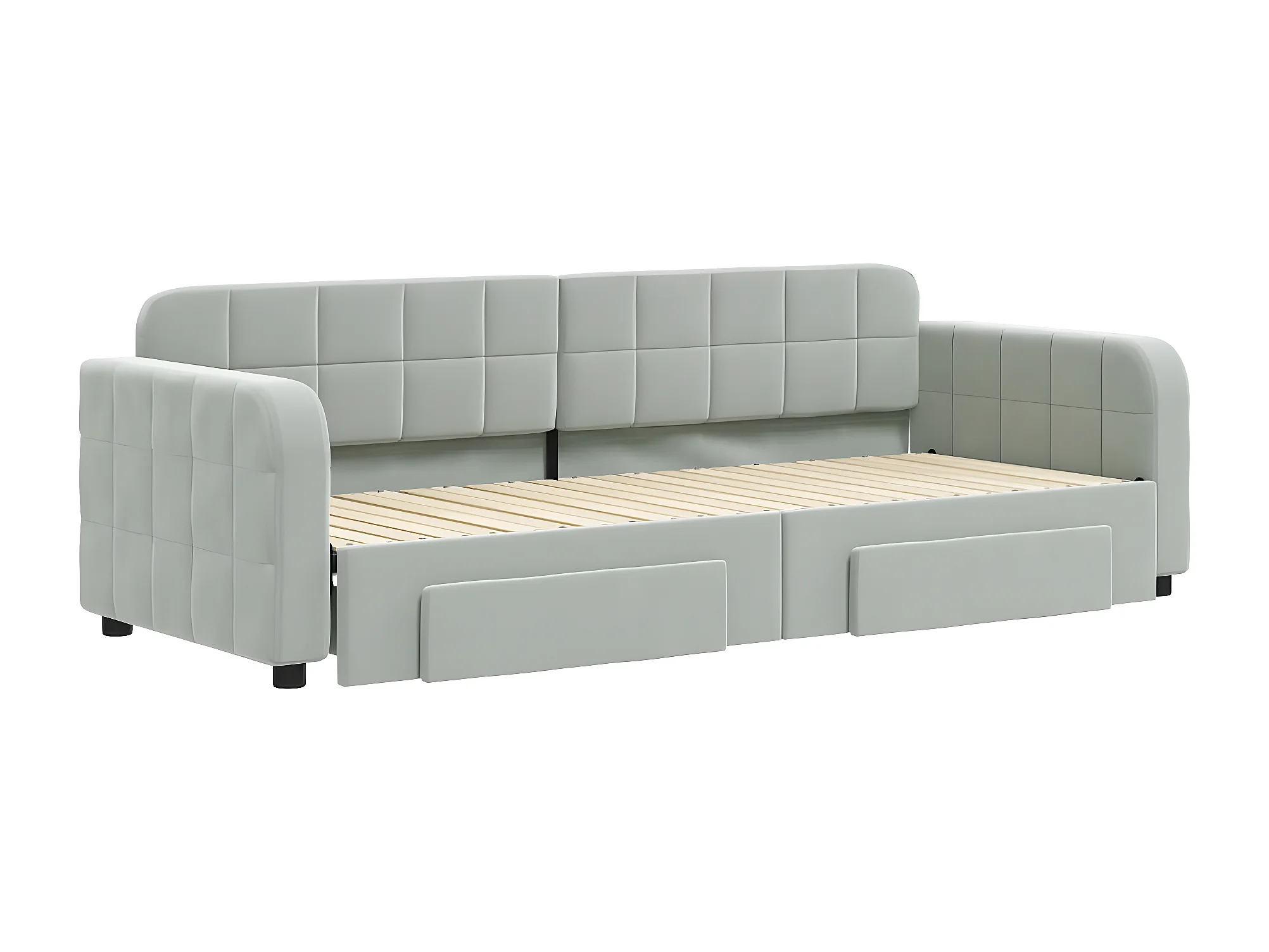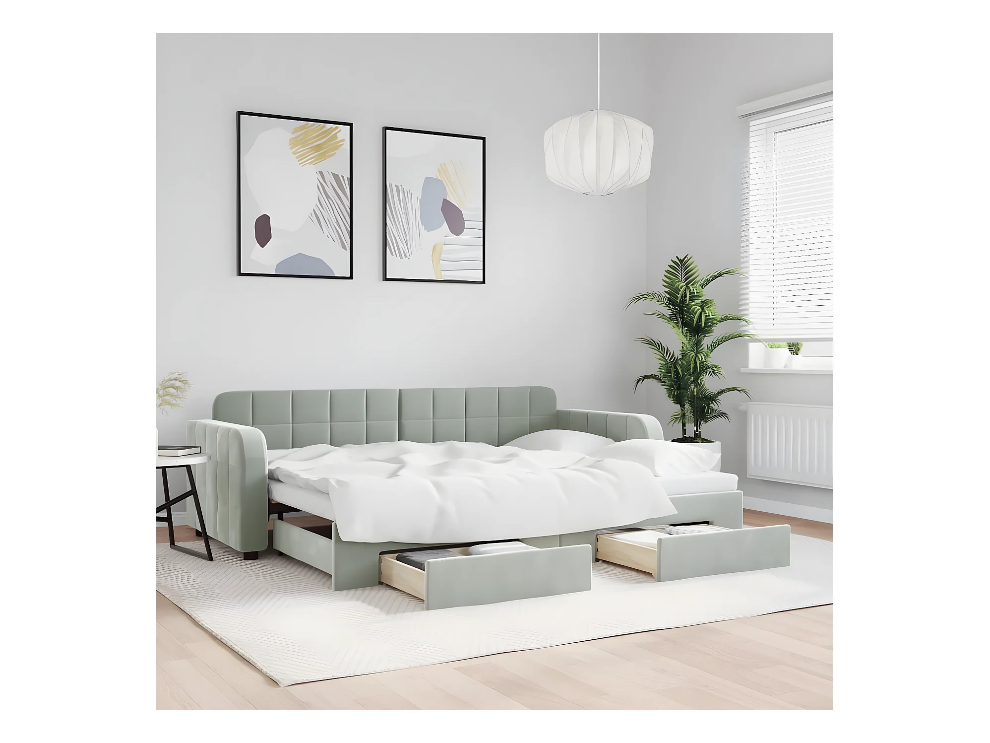 Lit de jour avec gigogne et tiroirs gris clair 80x200cm velours