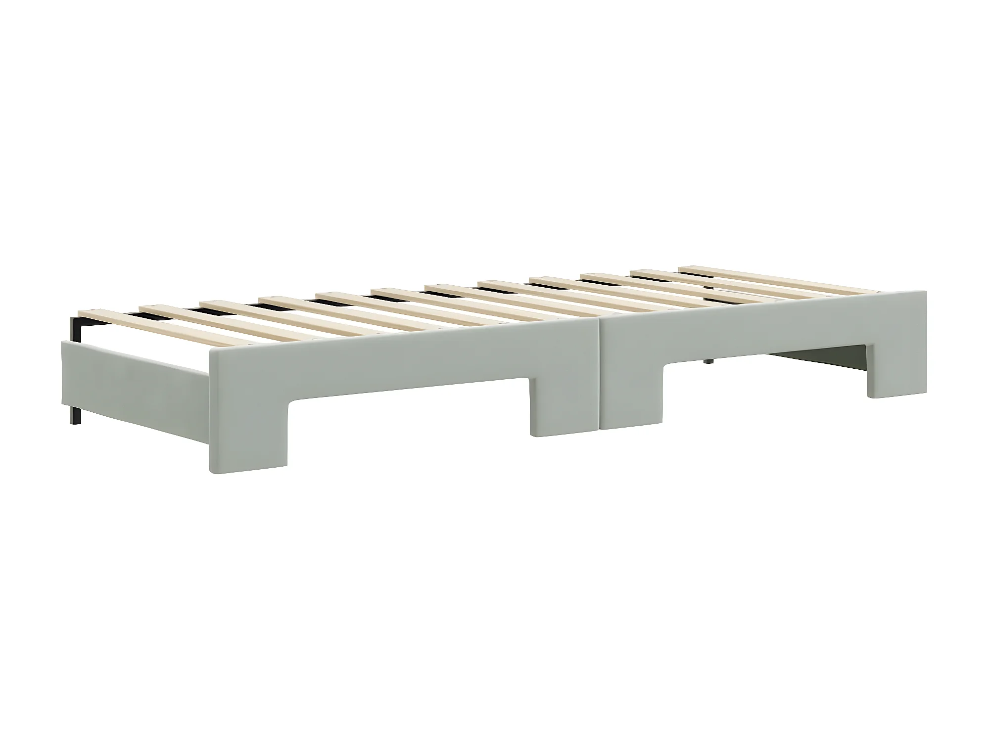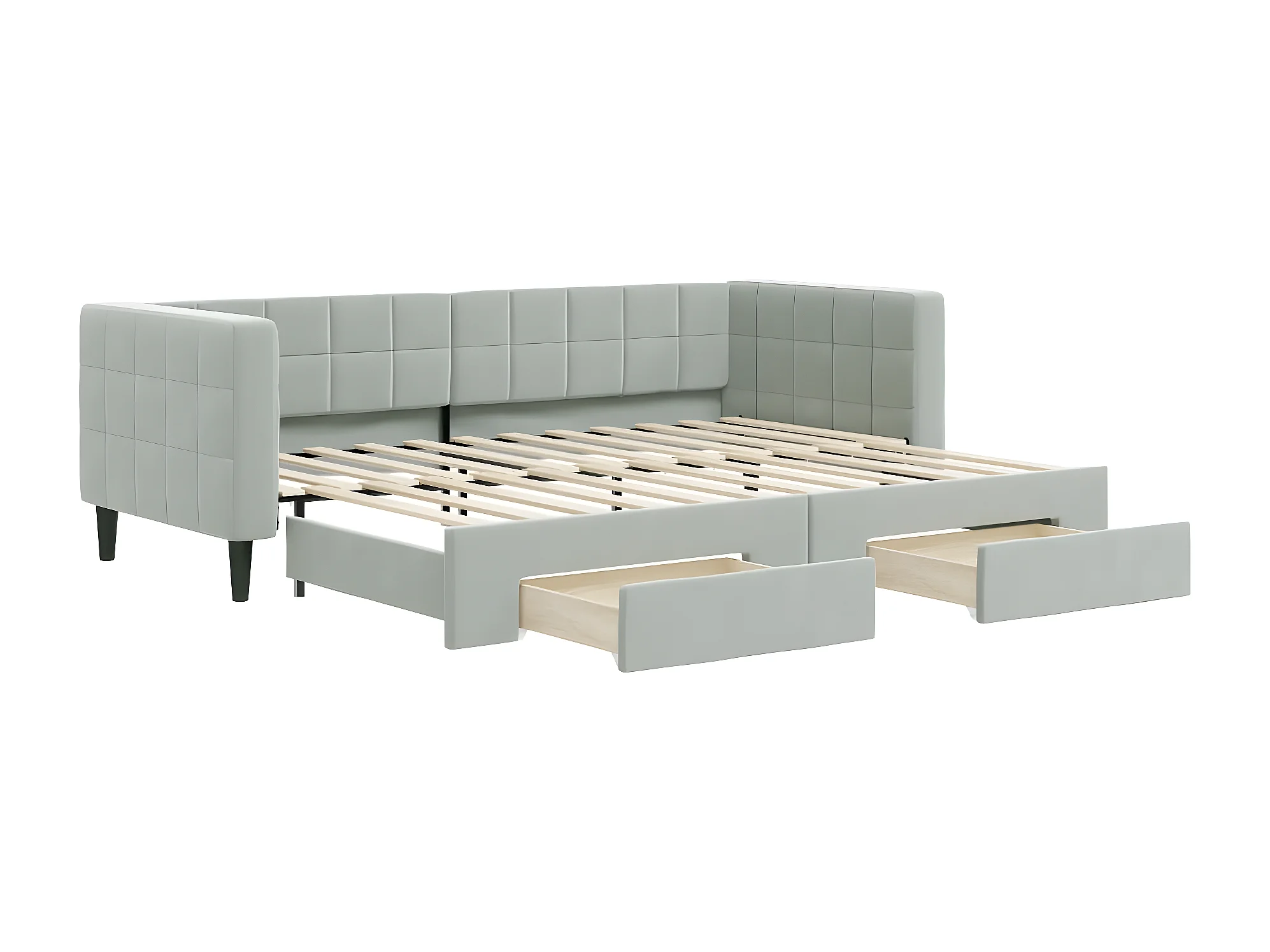 Lit de jour avec gigogne et tiroirs gris clair 80x200cm velours