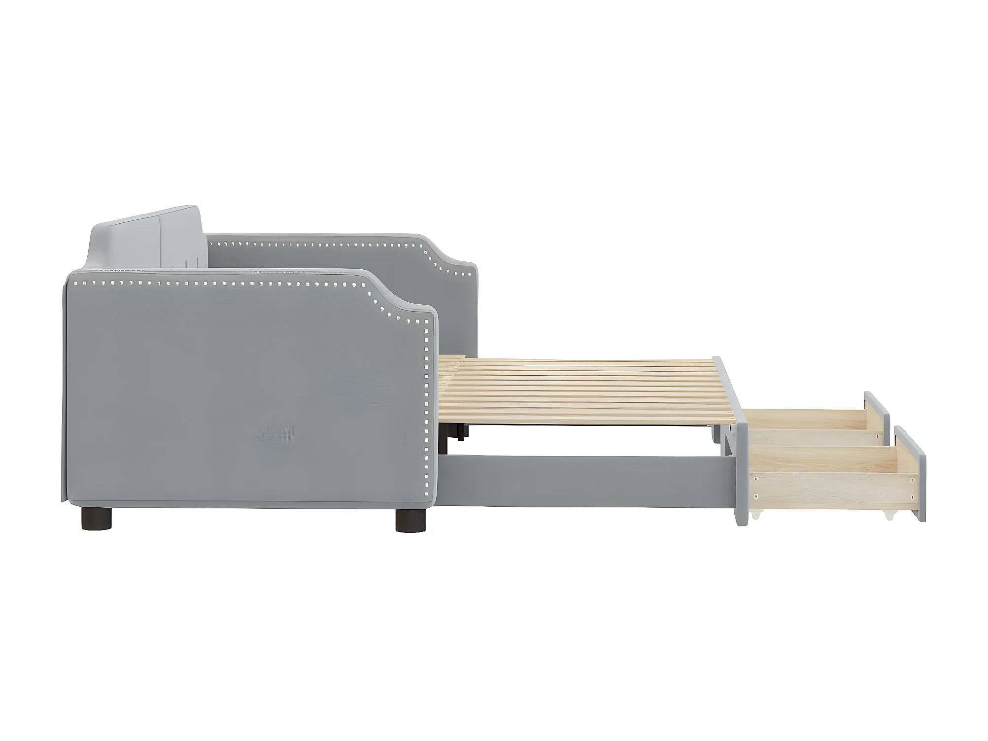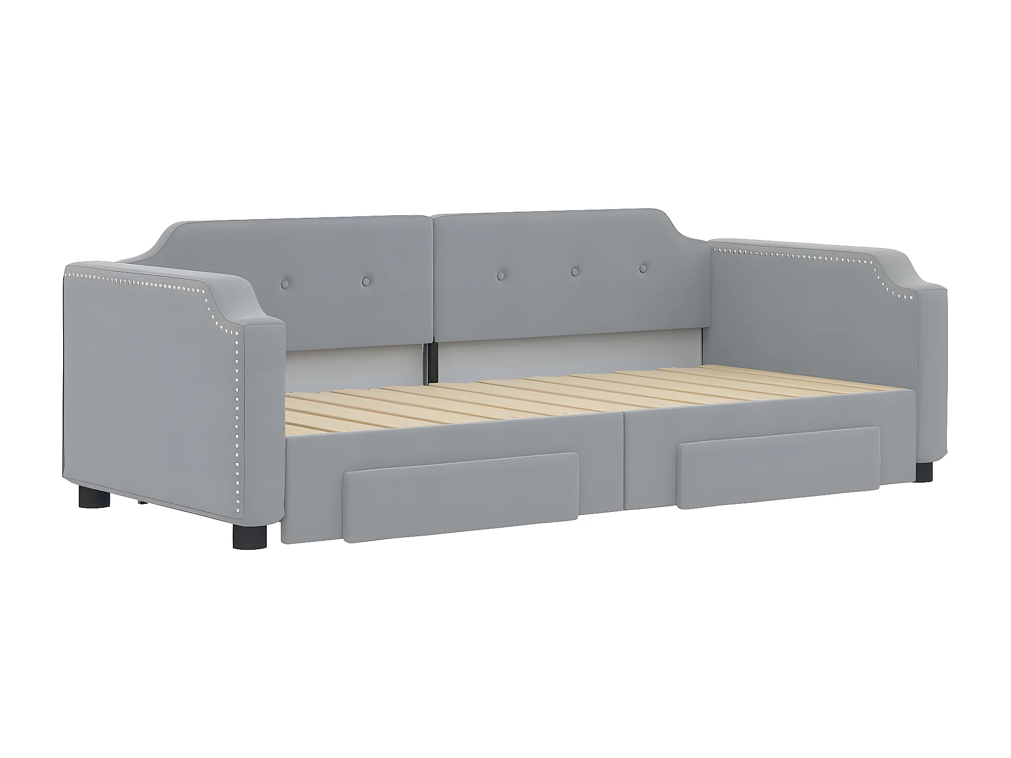 Lit de jour avec gigogne et tiroirs gris clair 90x190 cm tissu