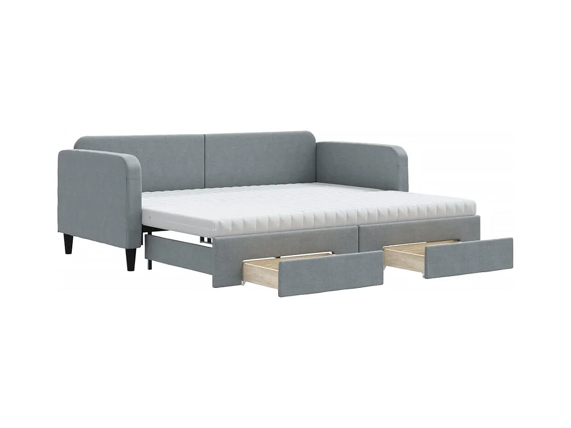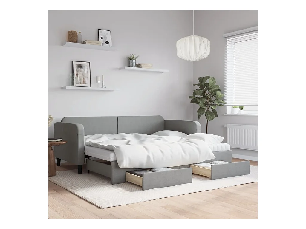Lit de jour avec gigogne et tiroirs gris clair 90x190 cm tissu