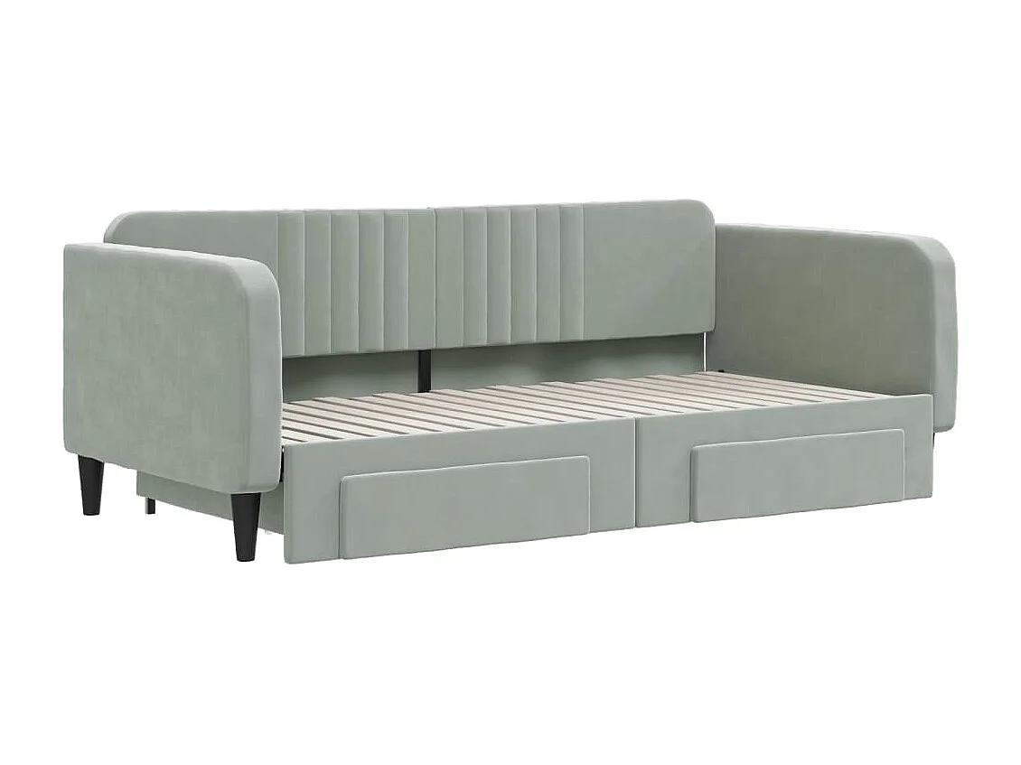 Lit de jour avec gigogne et tiroirs gris clair 90x190cm velours