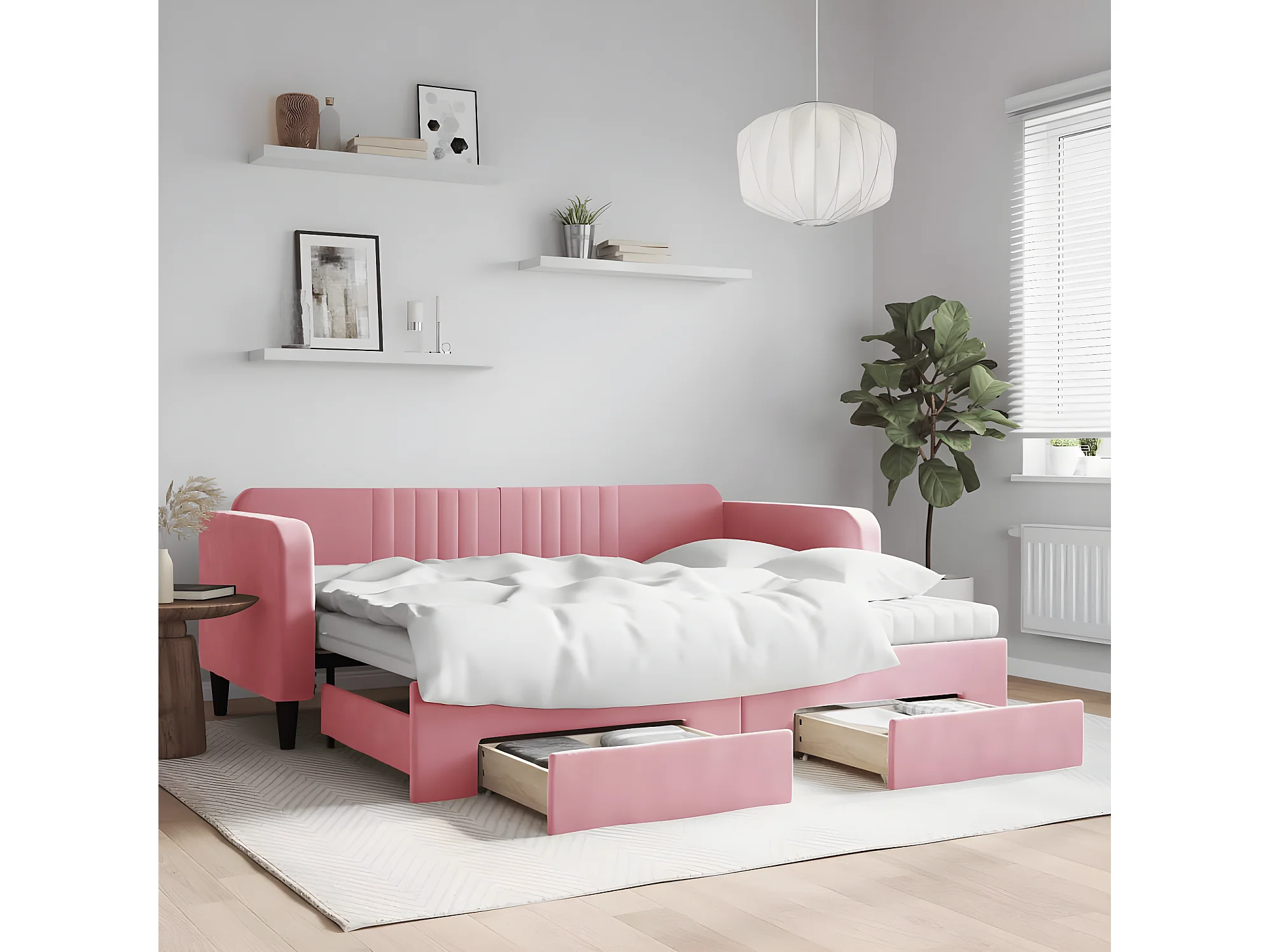 Lit de jour avec gigogne et tiroirs rose 90x200 cm velours