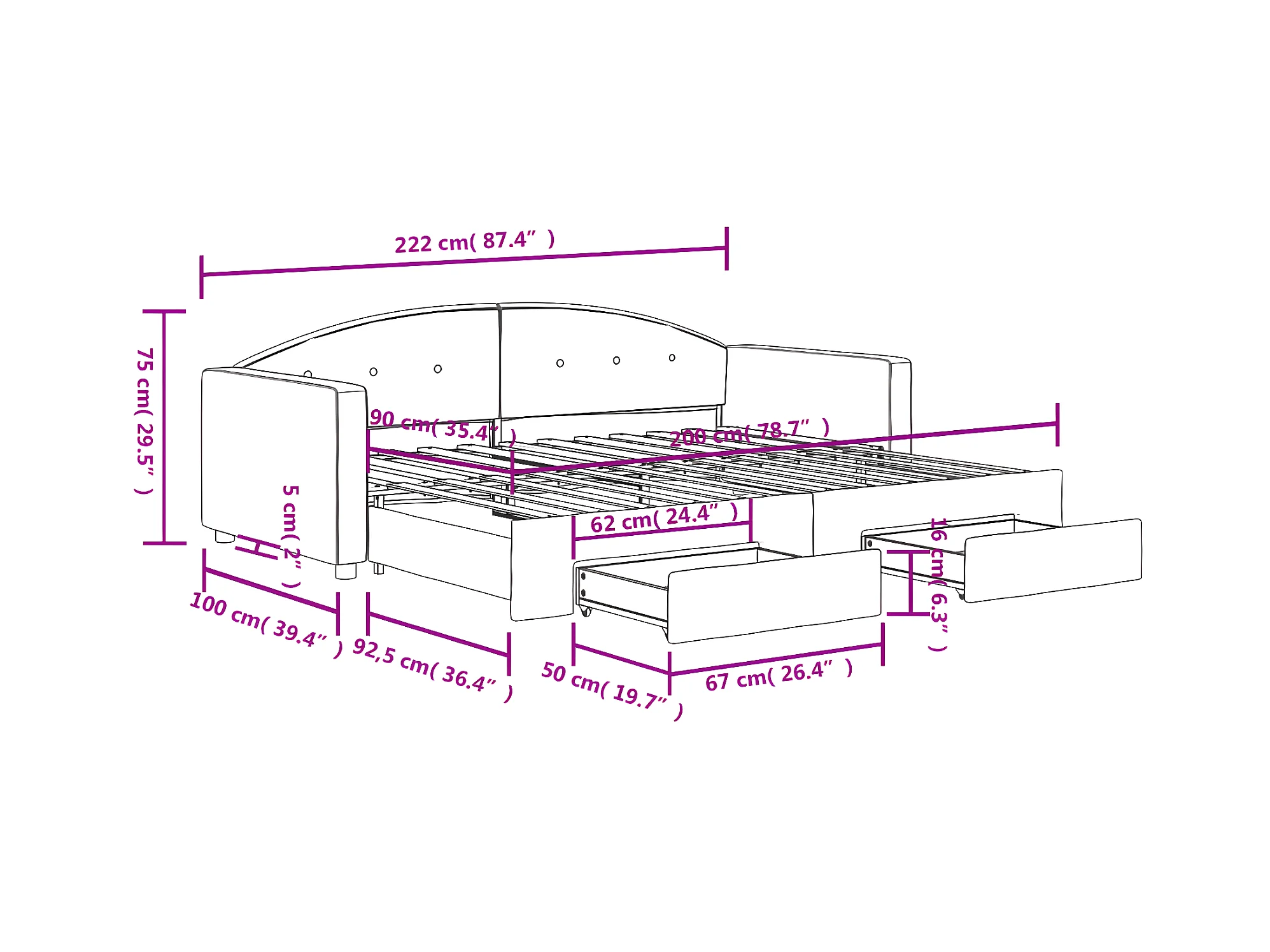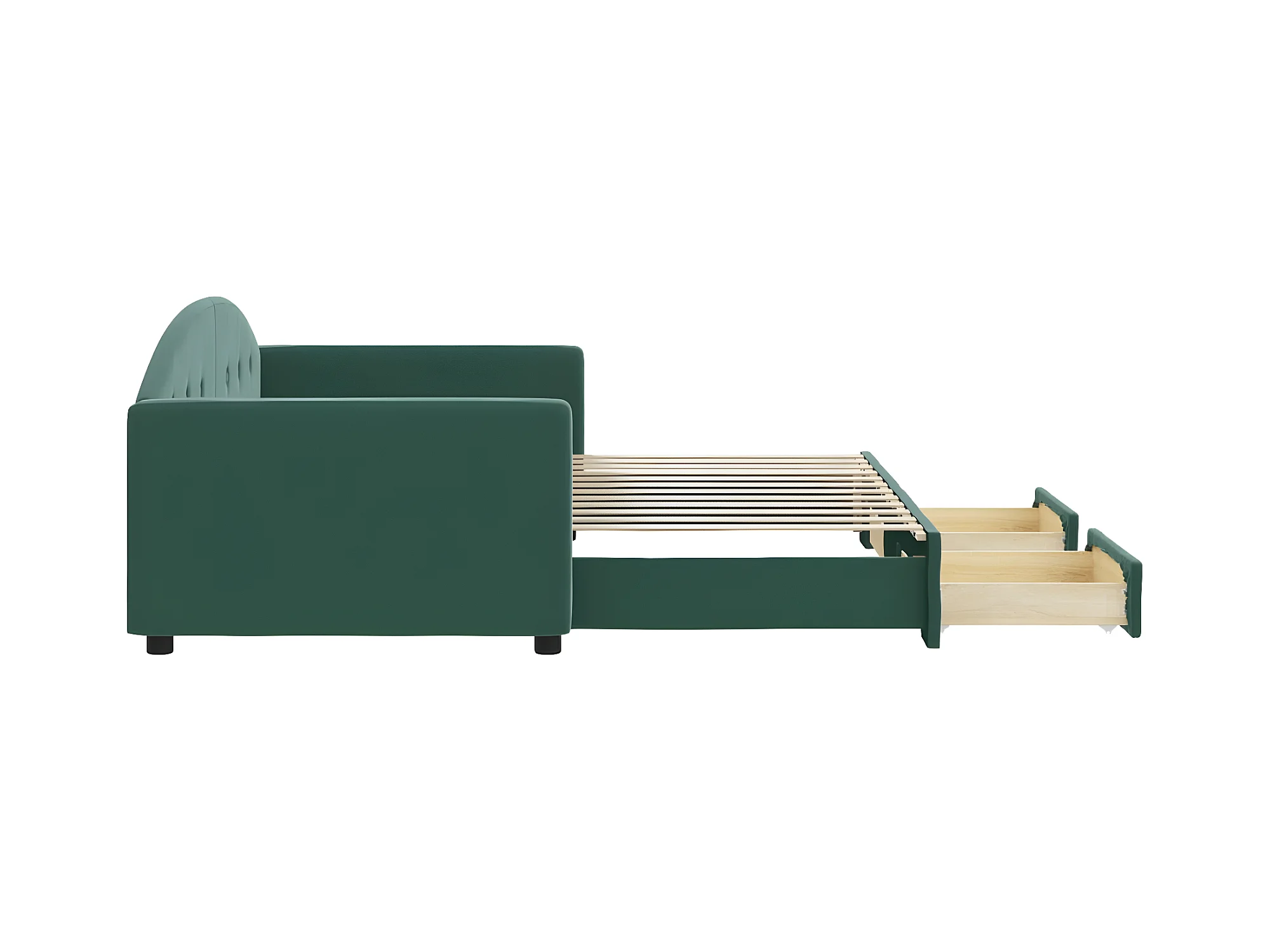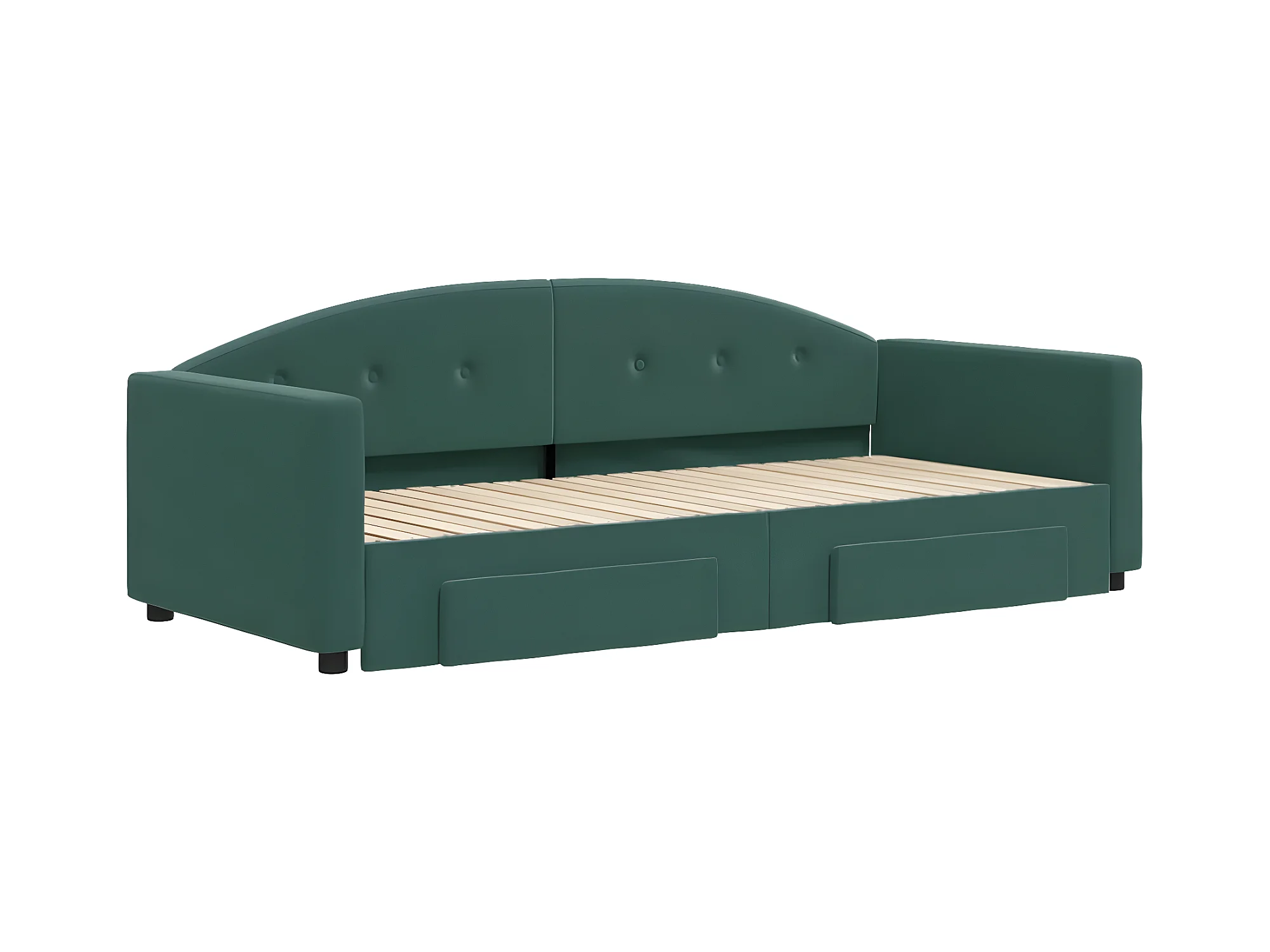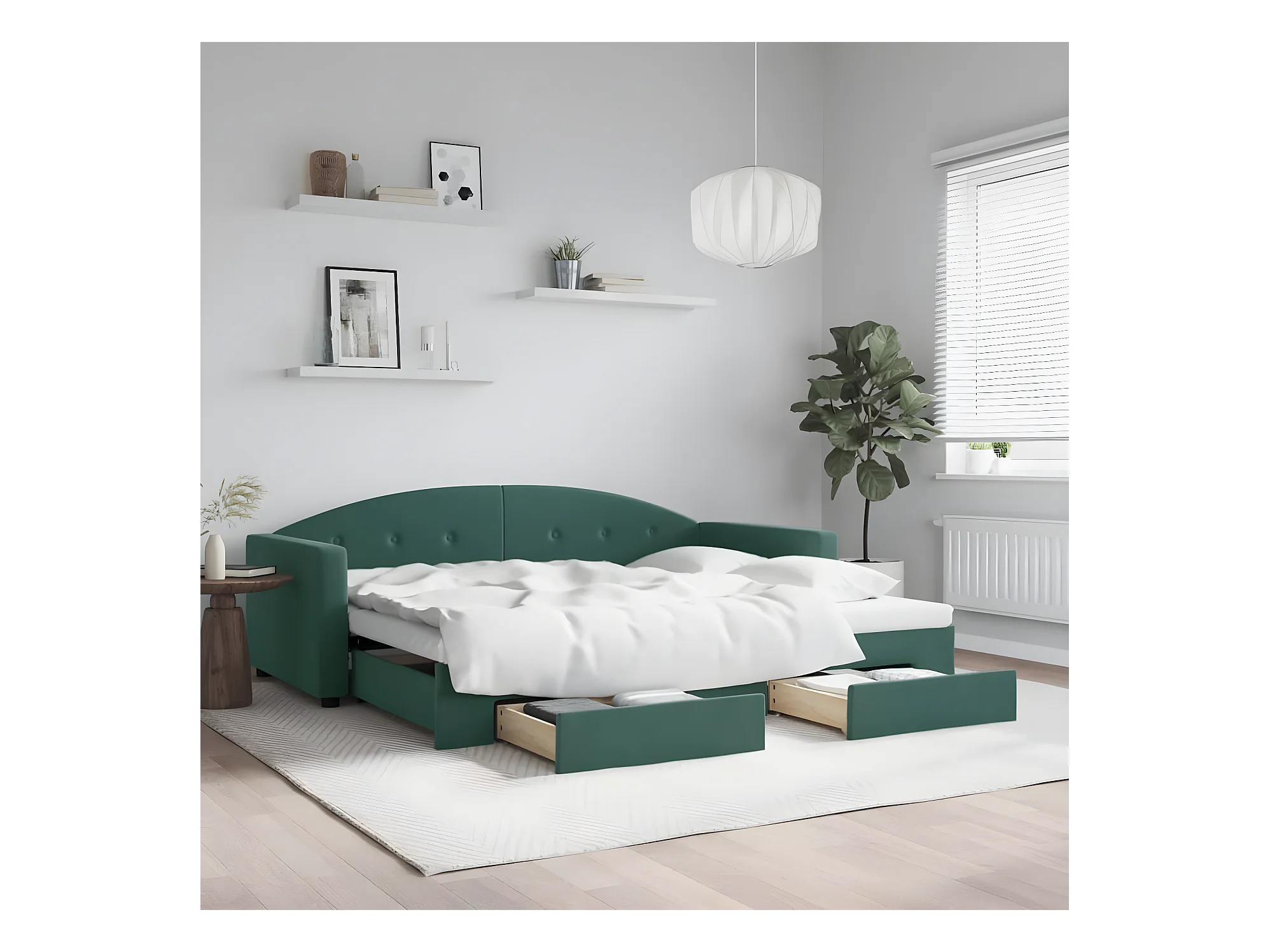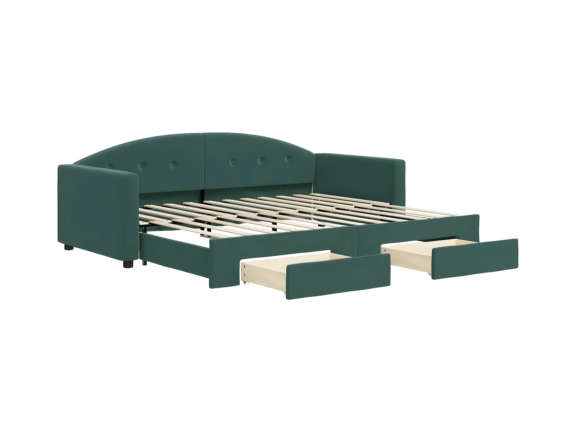 Lit de jour avec gigogne et tiroirs vert foncé 90x200cm velours