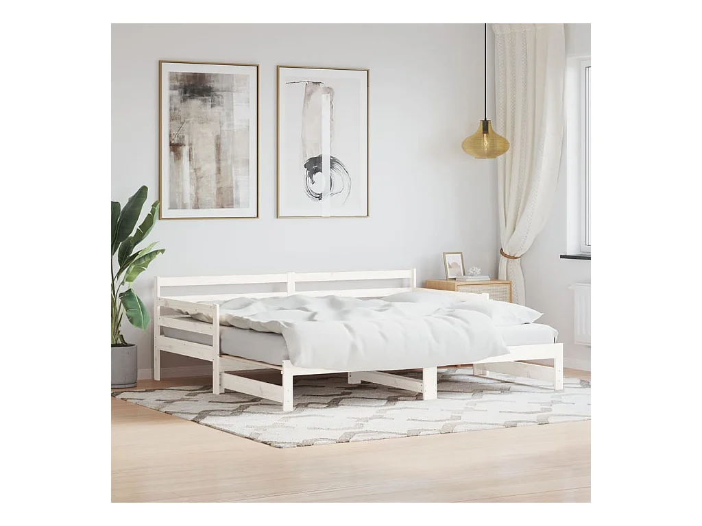 Lit de jour avec lit gigogne-90x190 cm blanc 90x190 cm bois de pin massif PSS65399