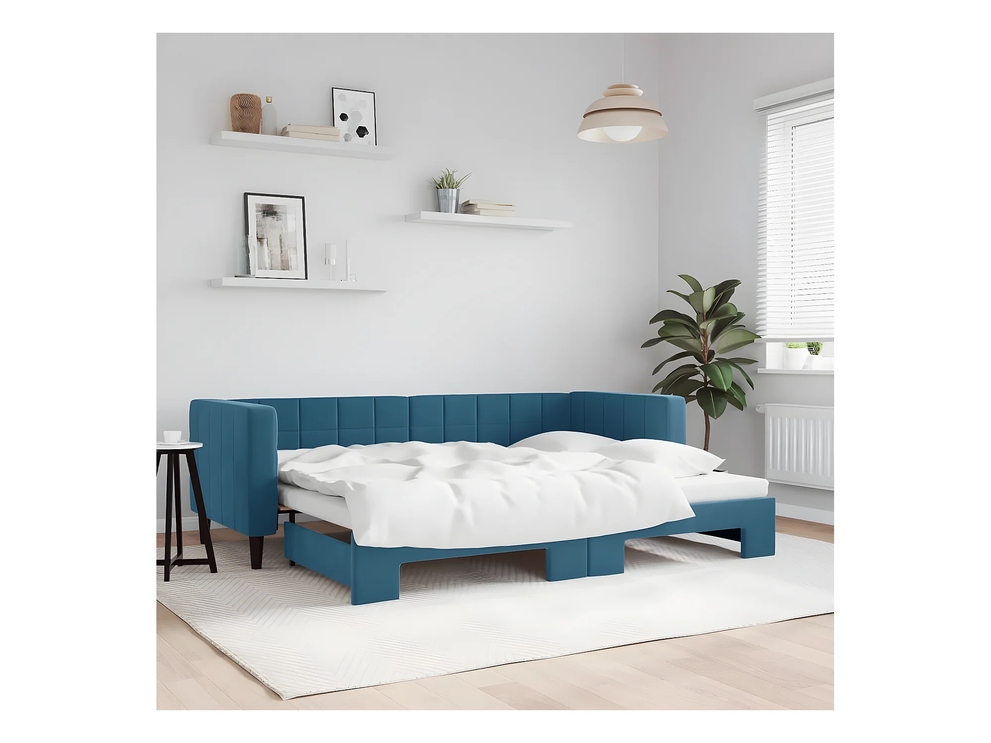 Lit de jour avec lit gigogne bleu 80x200 cm velours