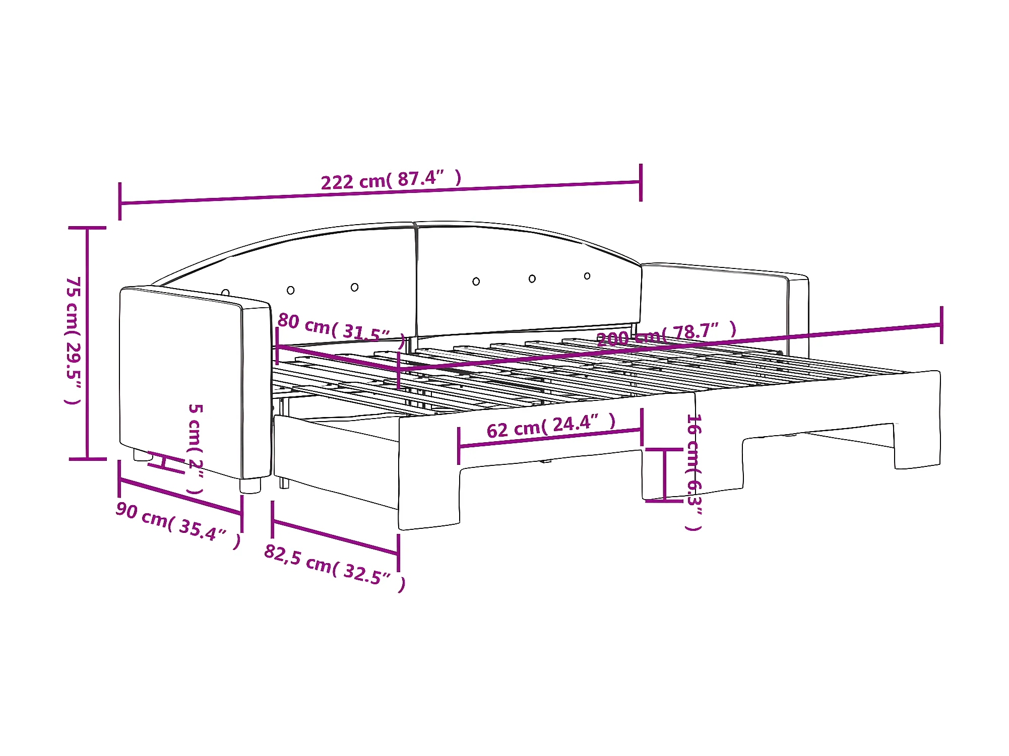 Lit de jour avec lit gigogne bleu 80x200 cm velours
