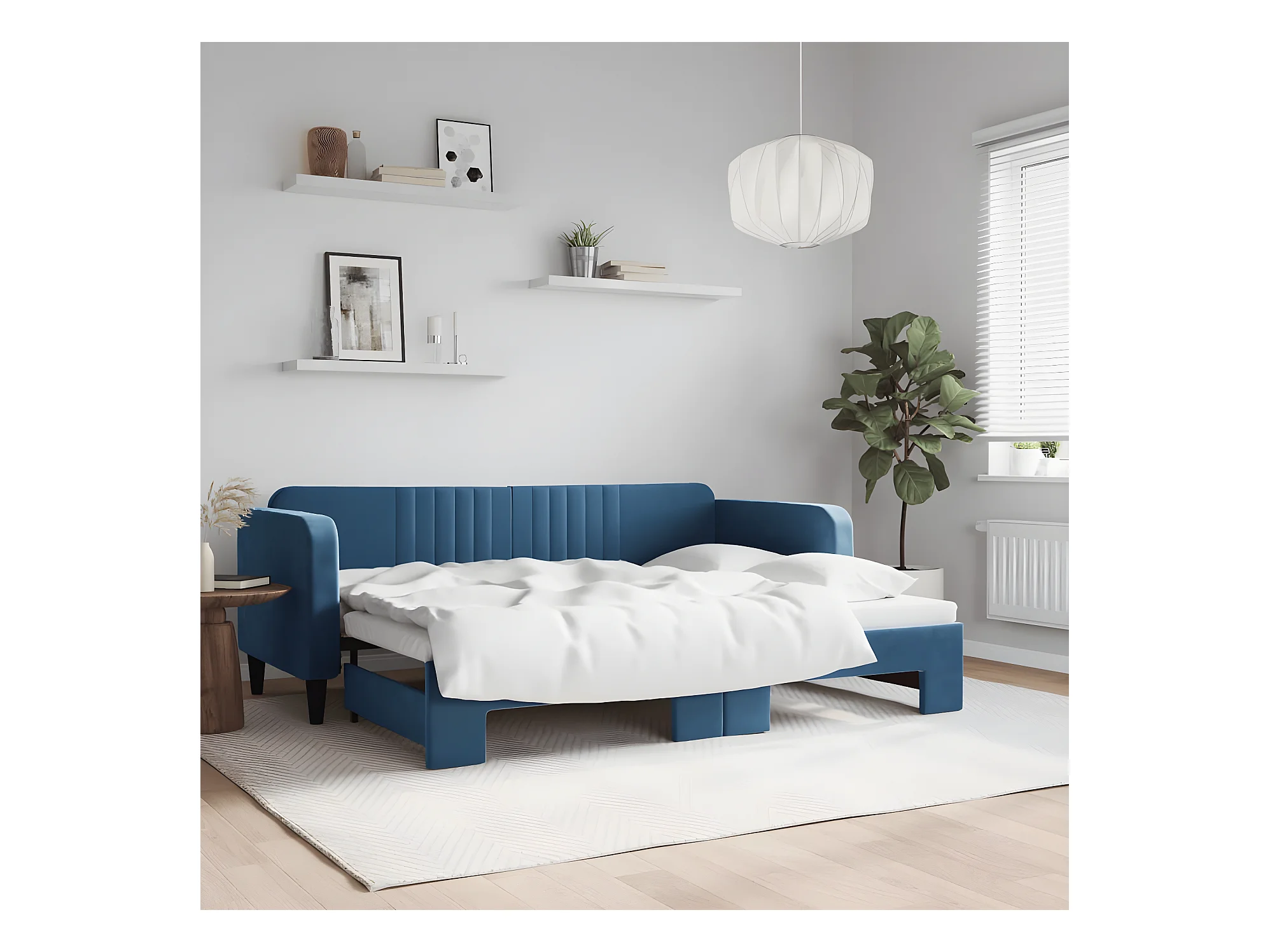 Lit de jour avec lit gigogne bleu 80x200 cm velours