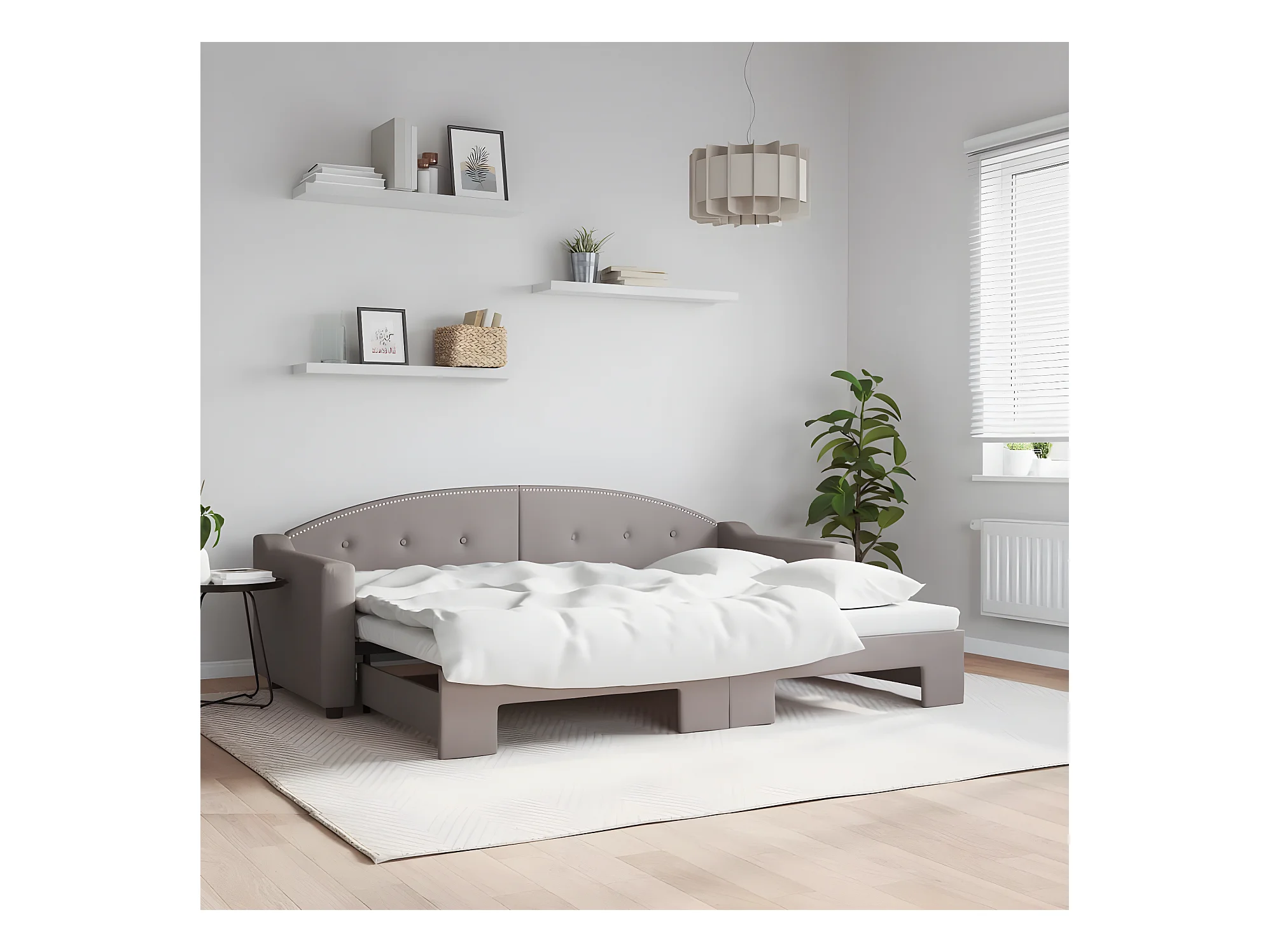 Lit de jour avec lit gigogne taupe 80x200 cm tissu