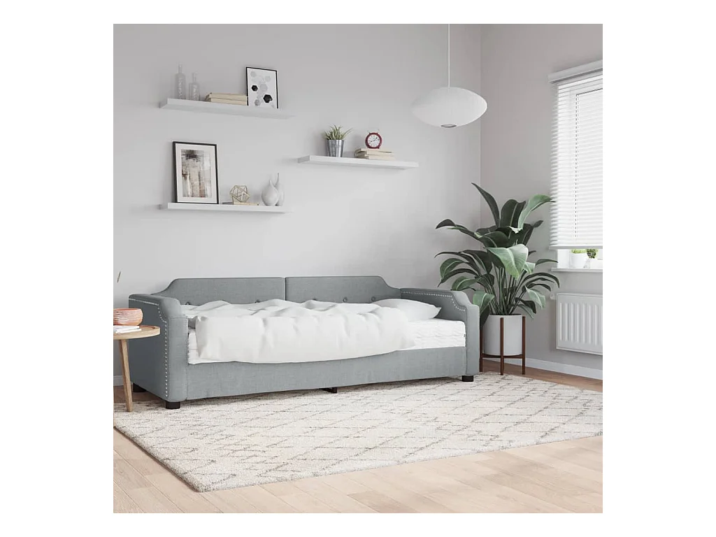 Lit de jour avec matelas gris clair 90x190 tissu