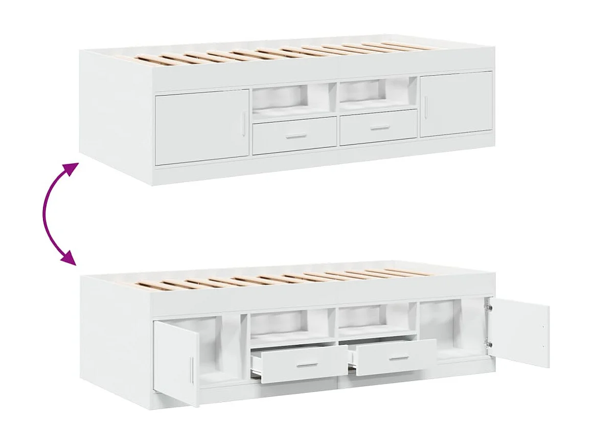 Lit de jour avec tiroirs blanc 90x200 bois d'ingénierie