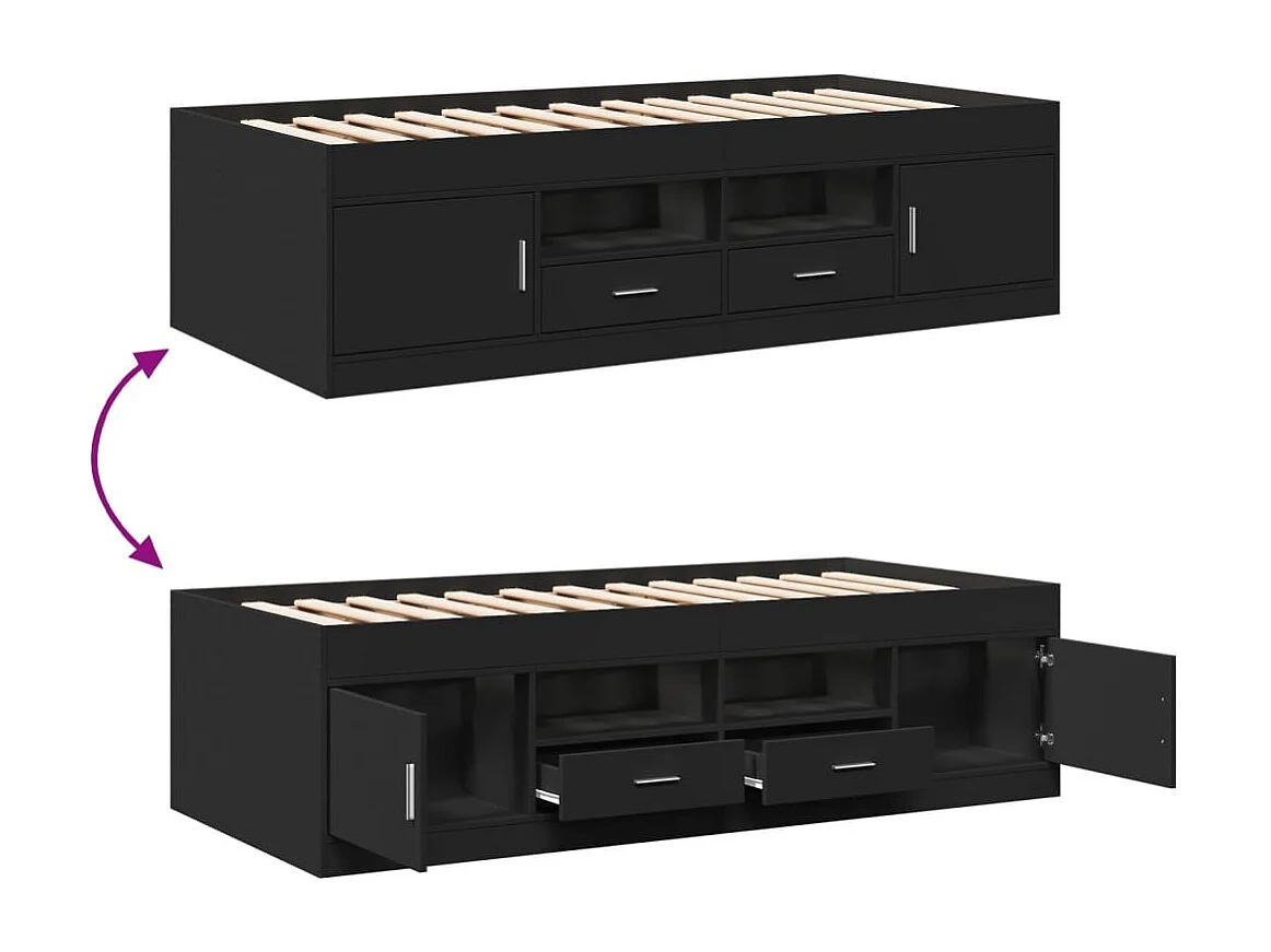 Lit de jour avec tiroirs noir 90x190 cm bois d'ingénierie