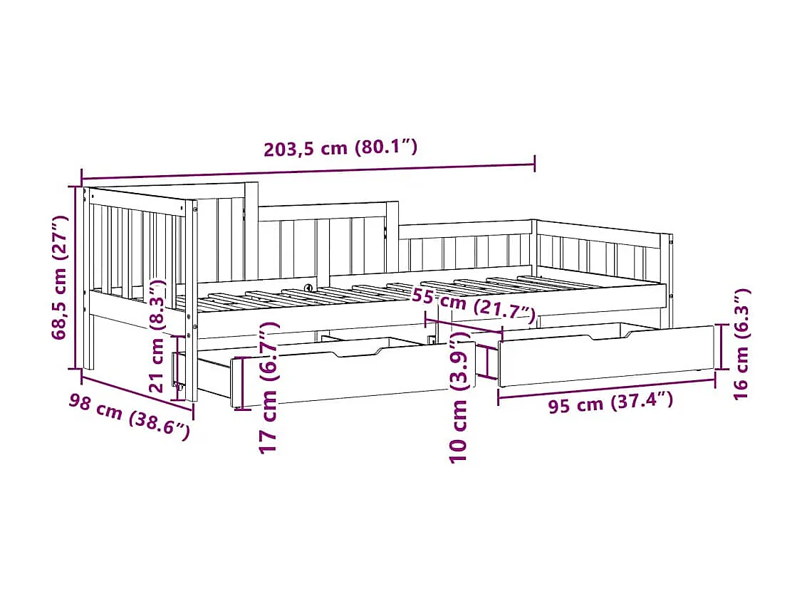 Lit de jour avec tiroirs sans matelas 90x200 cm bois massif