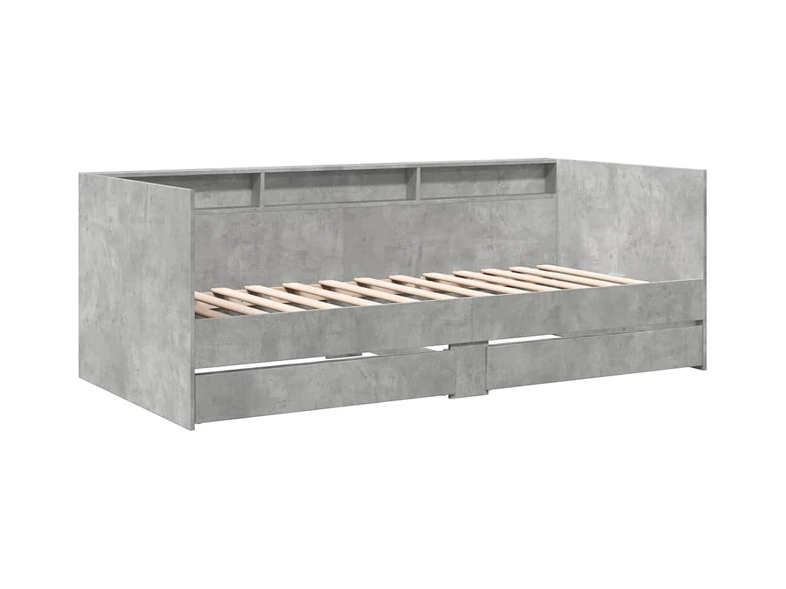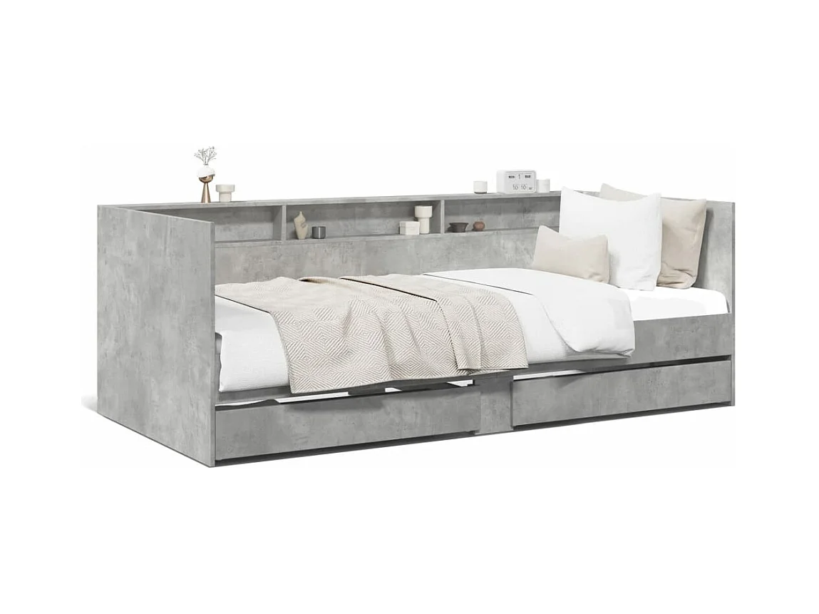 Lit de jour et tiroirs gris béton 75x190 bois d'ingénierie