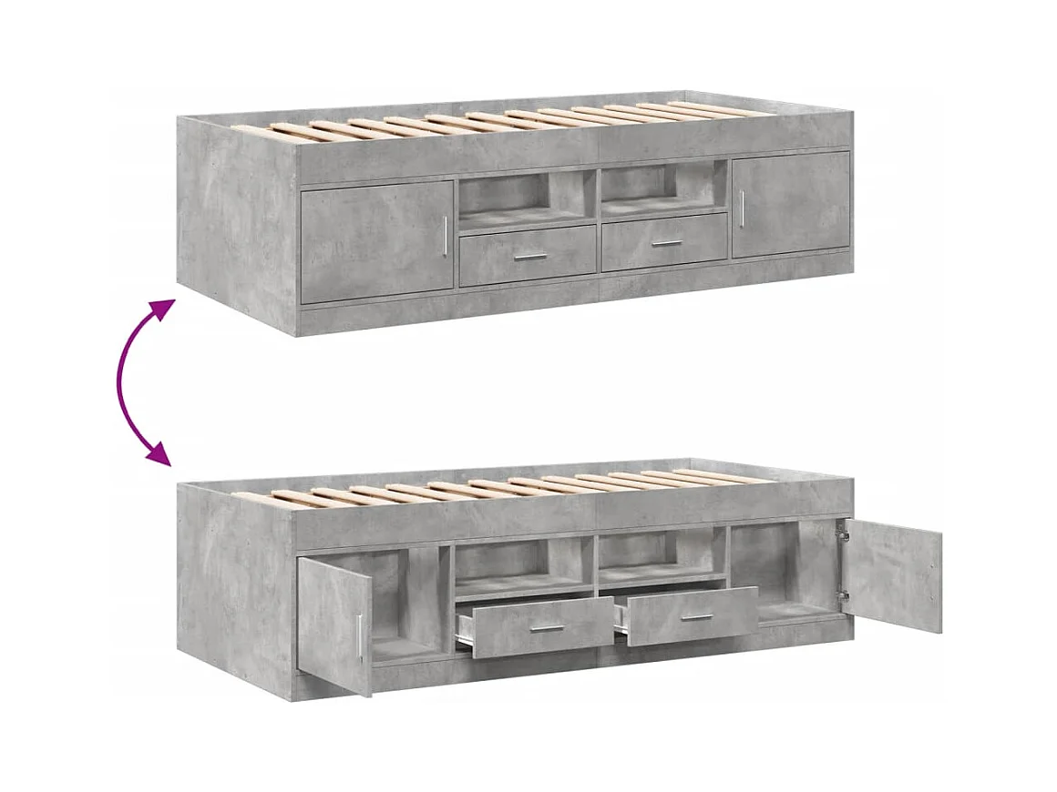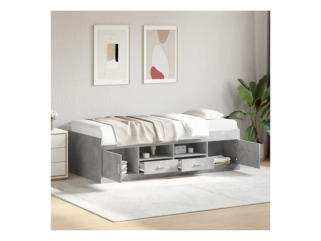Lit de jour et tiroirs gris béton 90x190 bois d'ingénierie
