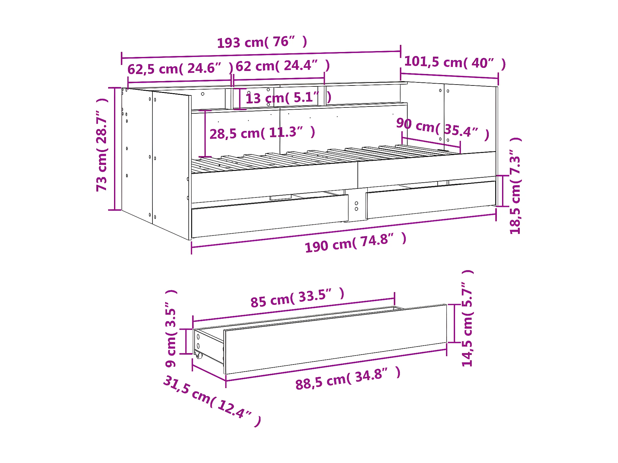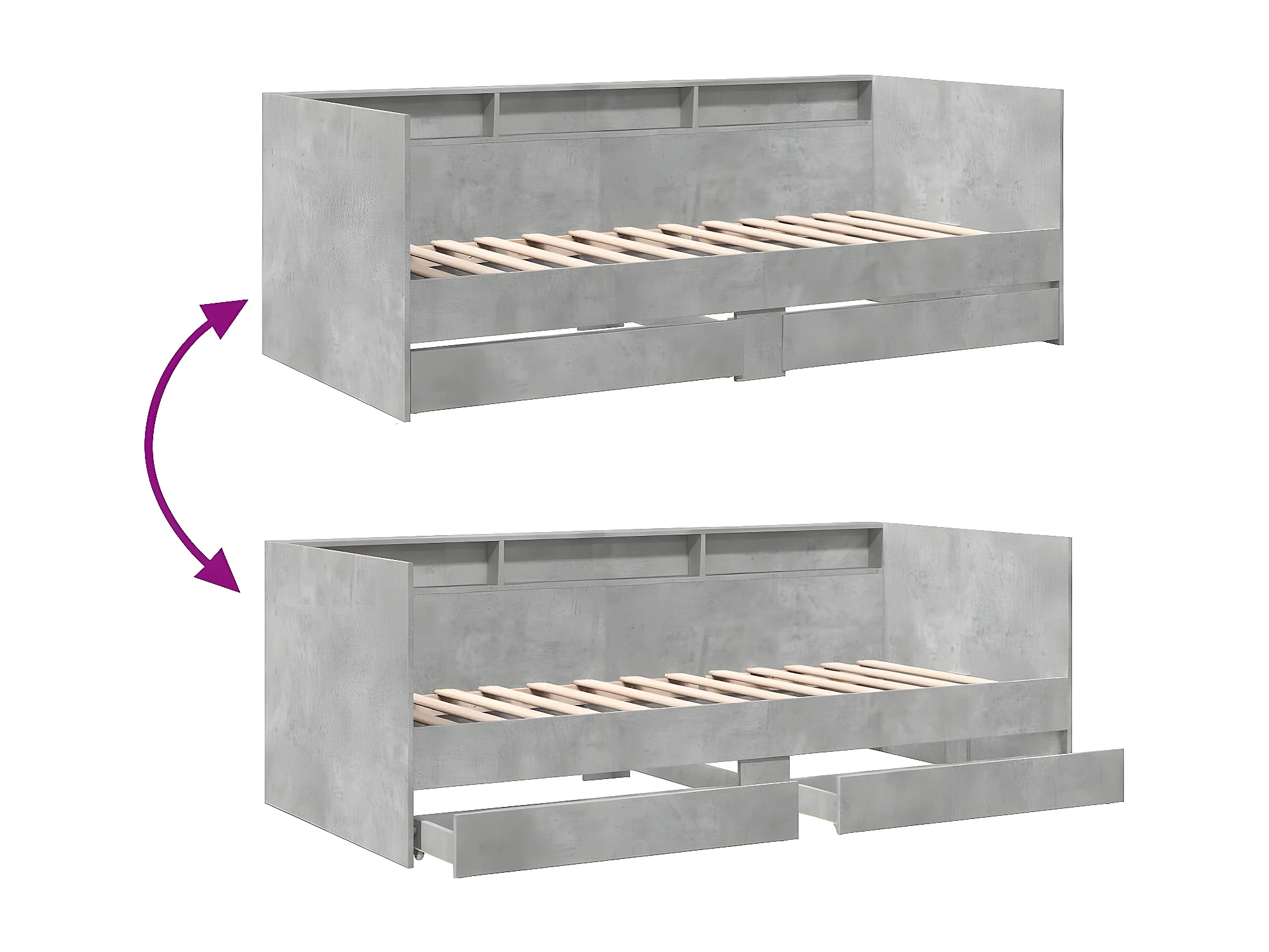 Lit de jour et tiroirs gris béton 90x190 cm bois d'ingénierie