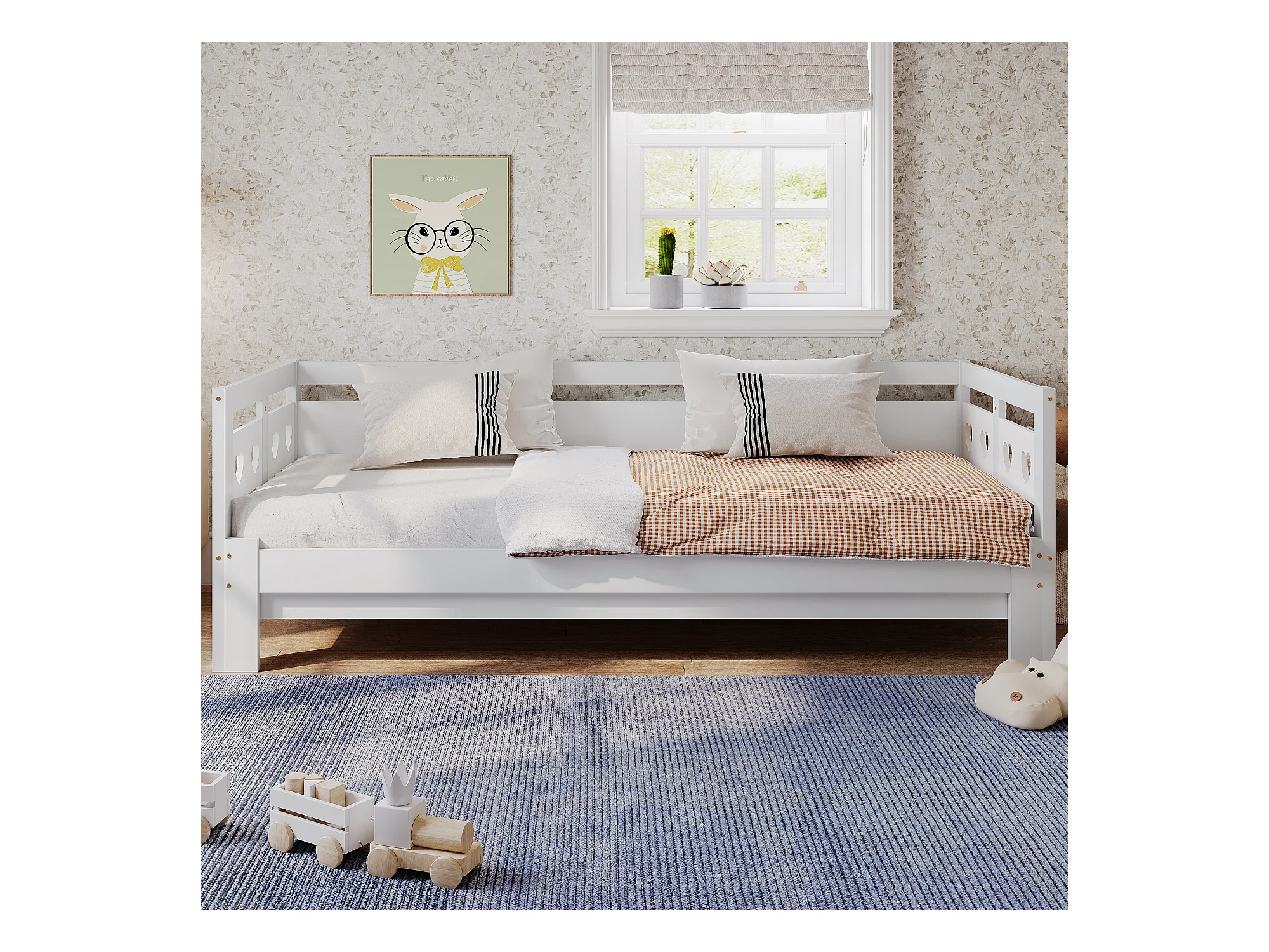 Lit simple 90 x 190 cm Lit enfant avec lit giggogne et sommier à lattes - en bois de pin - Blanc - Sans matelas