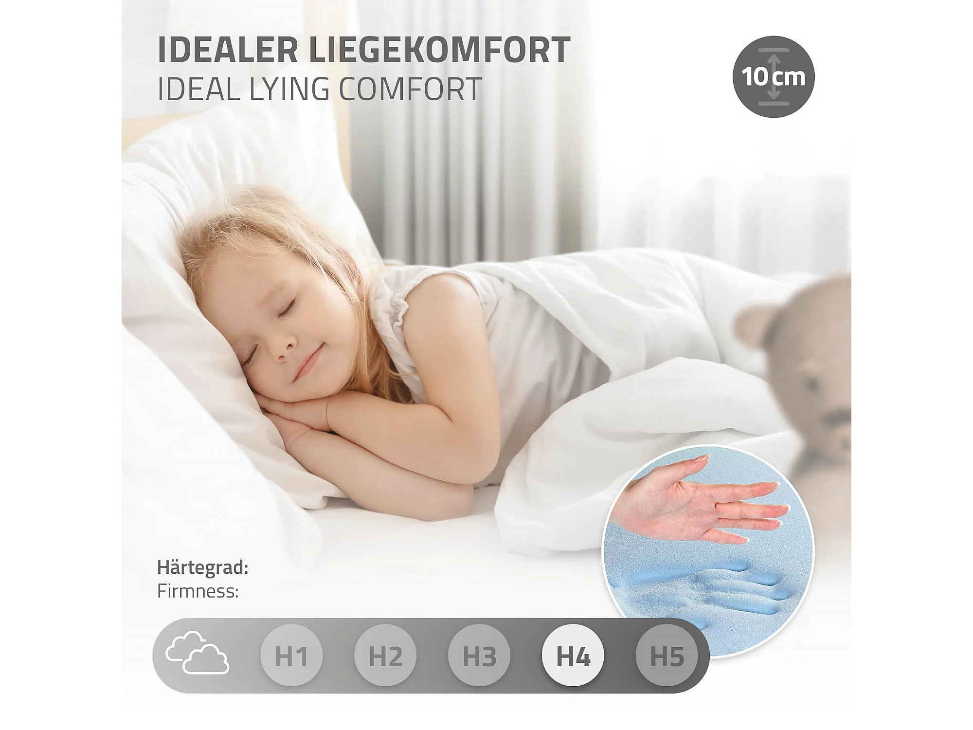 Lit d'enfant 90x200 cm avec matelas H10 cm en mousse cadre naturel en bois design de maison pin massif robuste avec sommier à lattes et filet de but