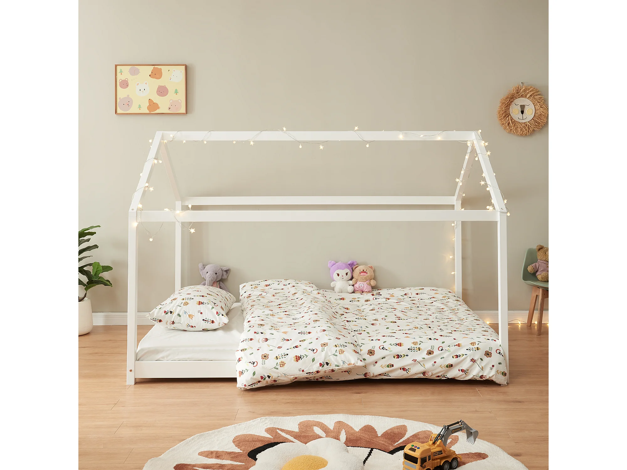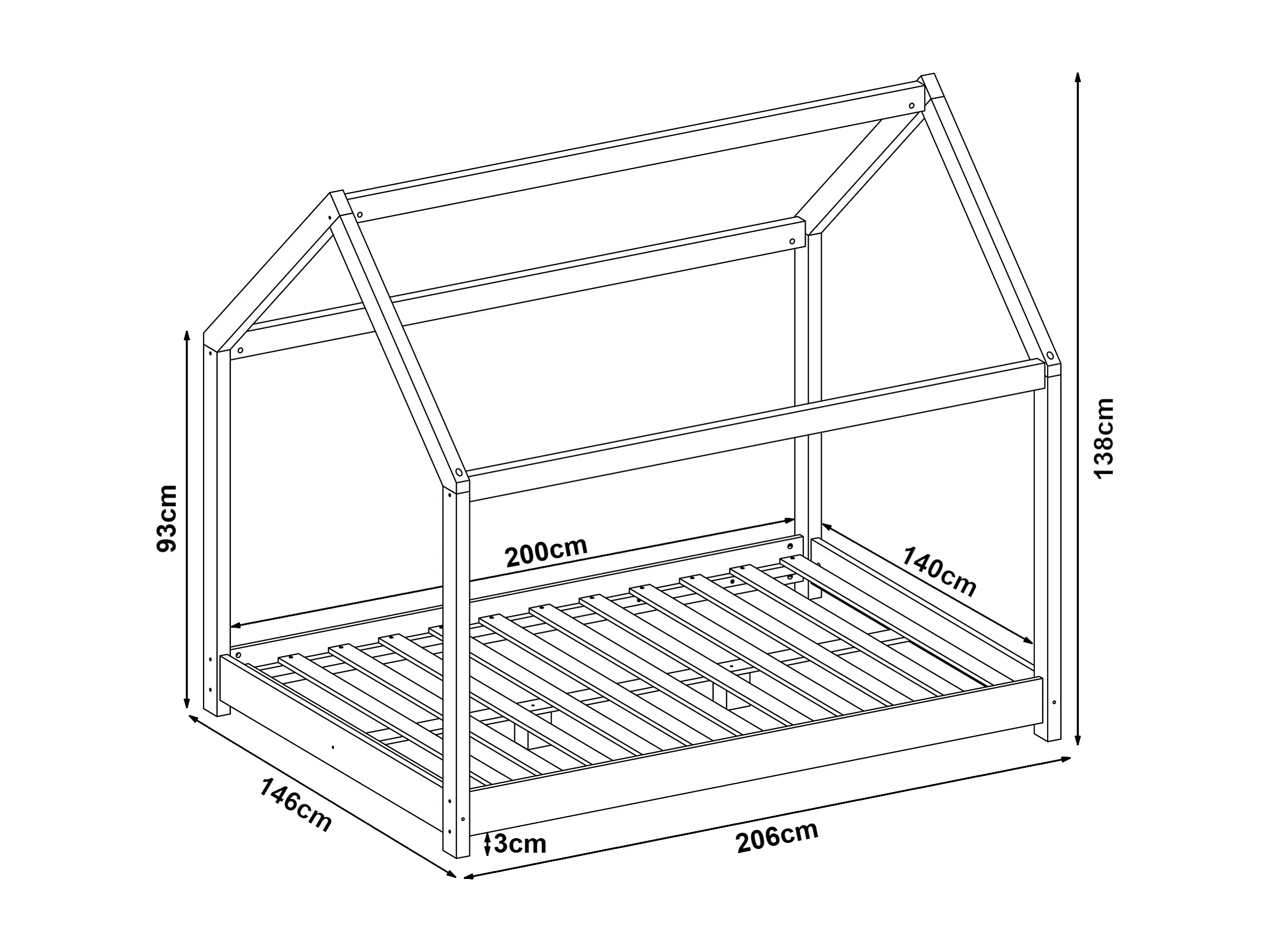 Lit cabane Cerro bois de pin 140 x 200 cm blanc [en.casa]