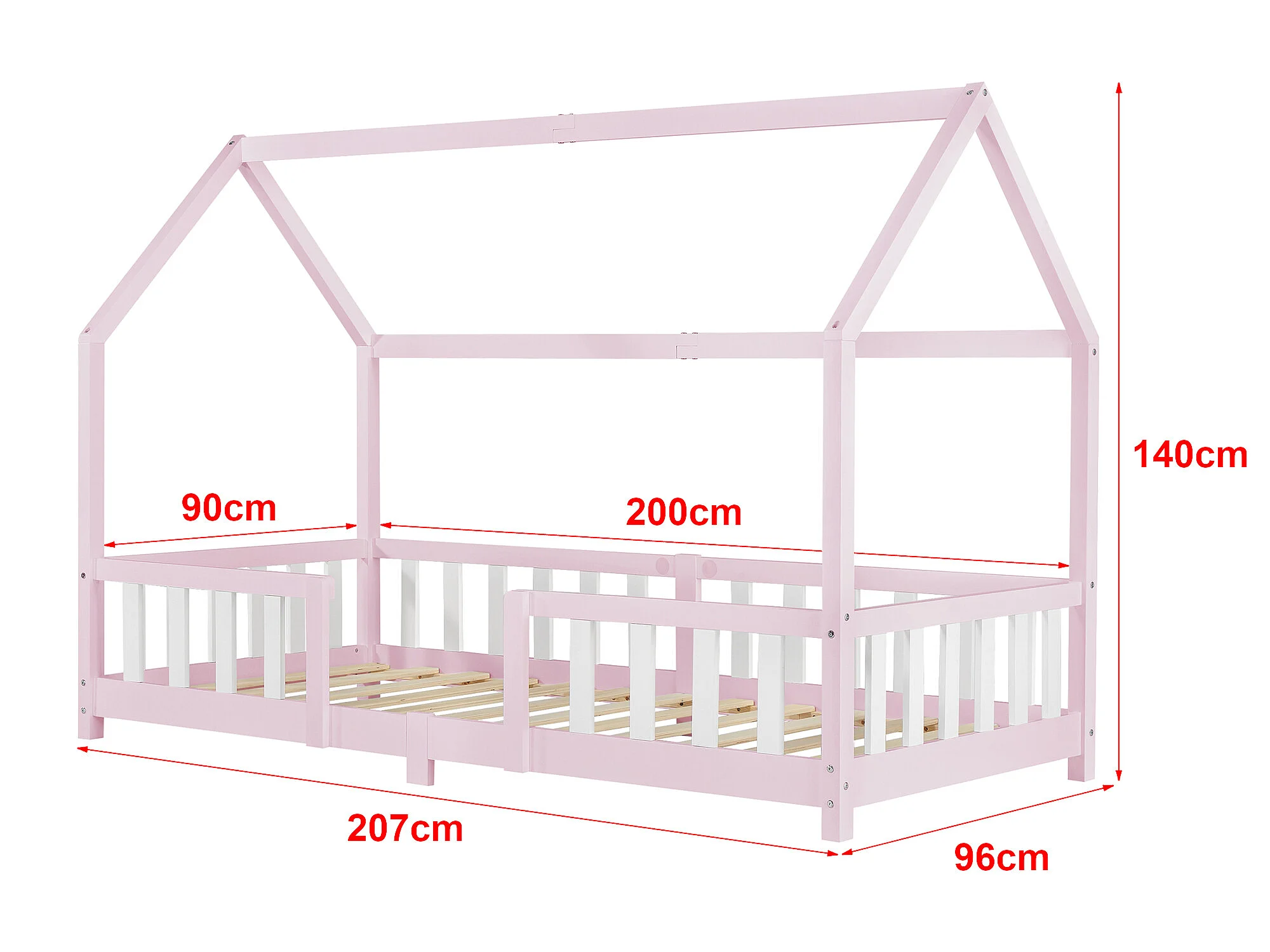 Lit d'Enfant Design Forme Maison Sisimiut Pin 200 x 90 cm Rose Blanc Mat Laqué [en.casa]