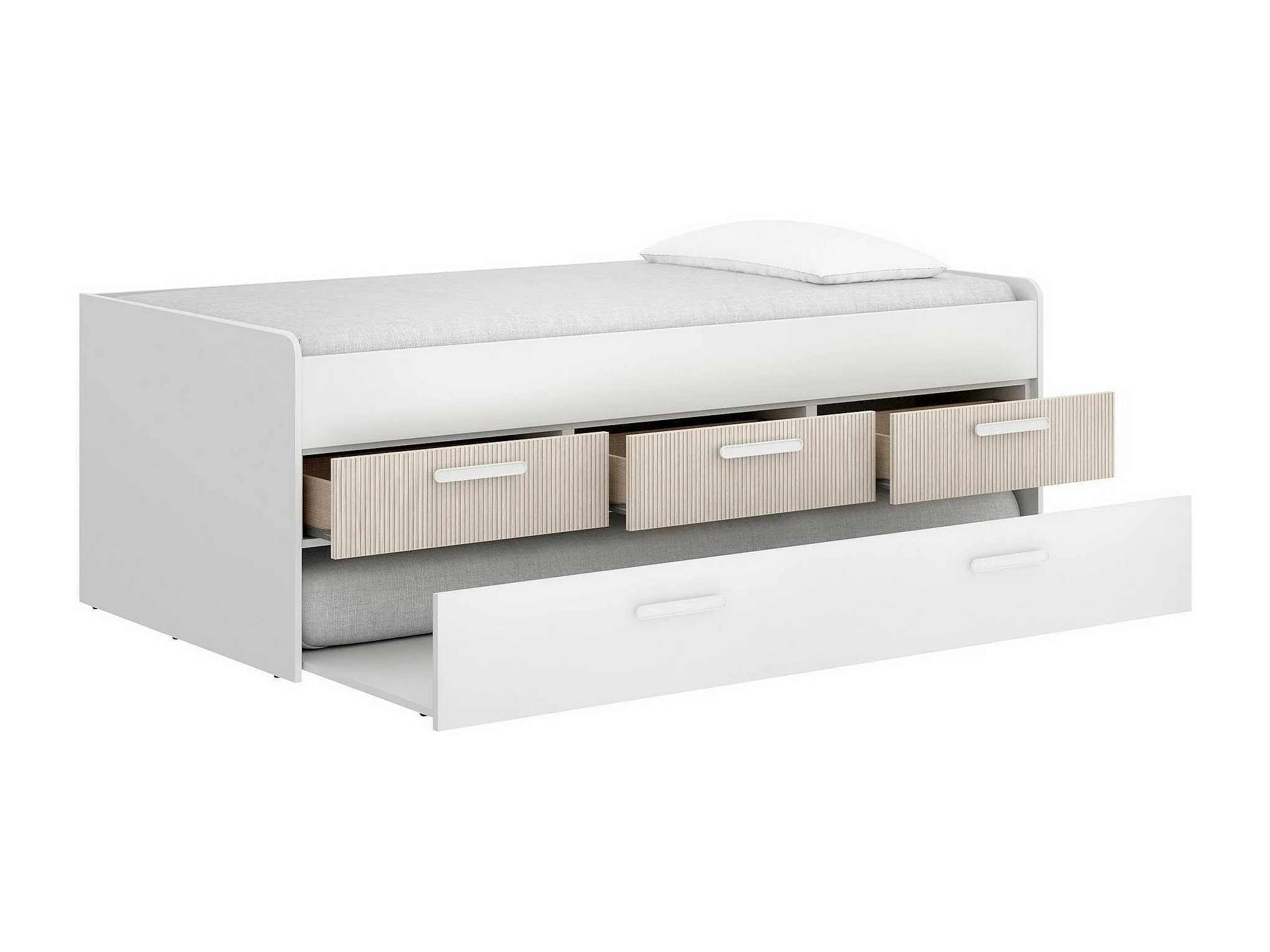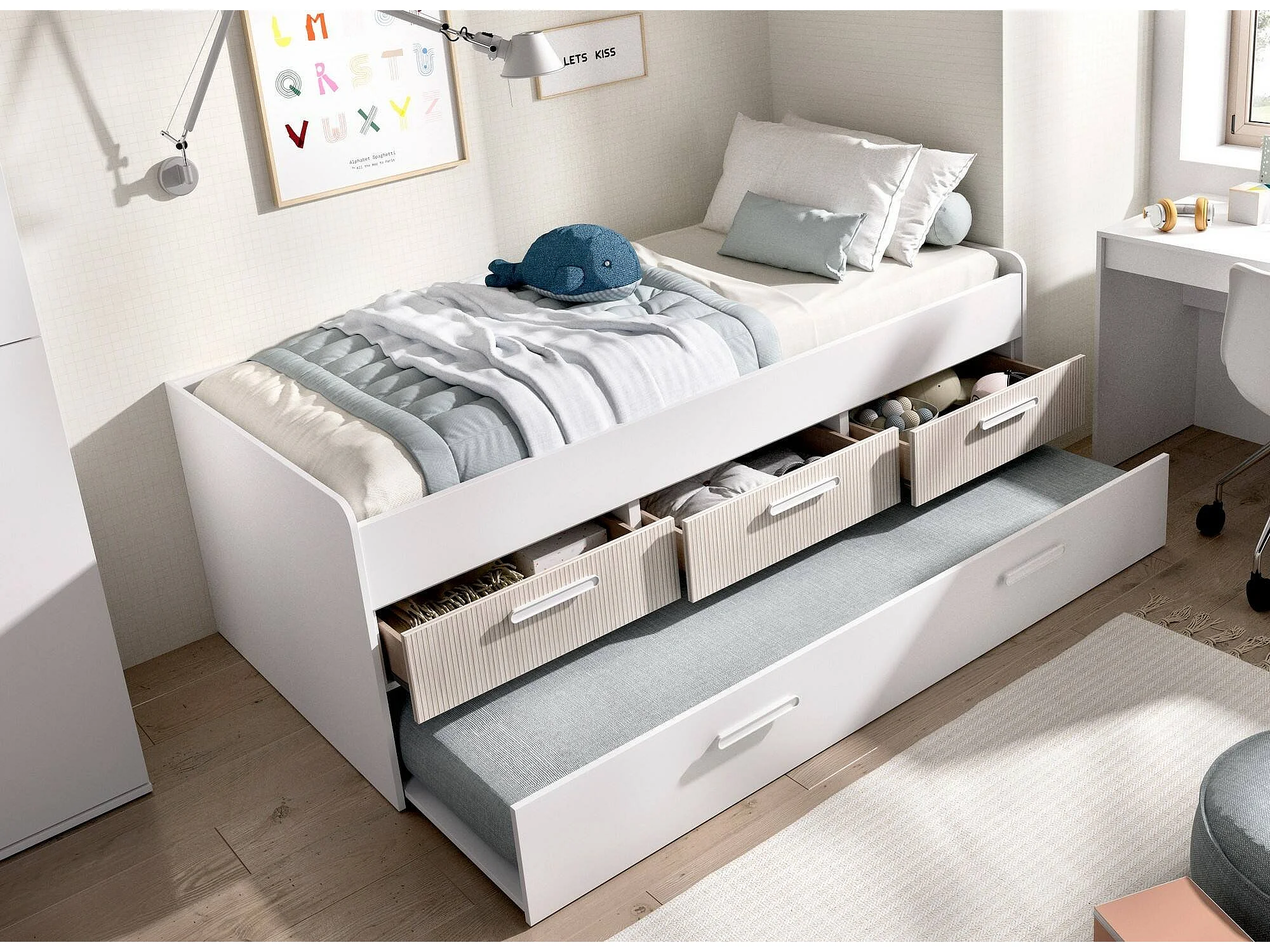 Lit d'enfant Dnore, Couchette pour chambre d'enfant, Ensemble de chambre, Support de matelas, 194x95 h68 cm, Blanc et Chêne clair