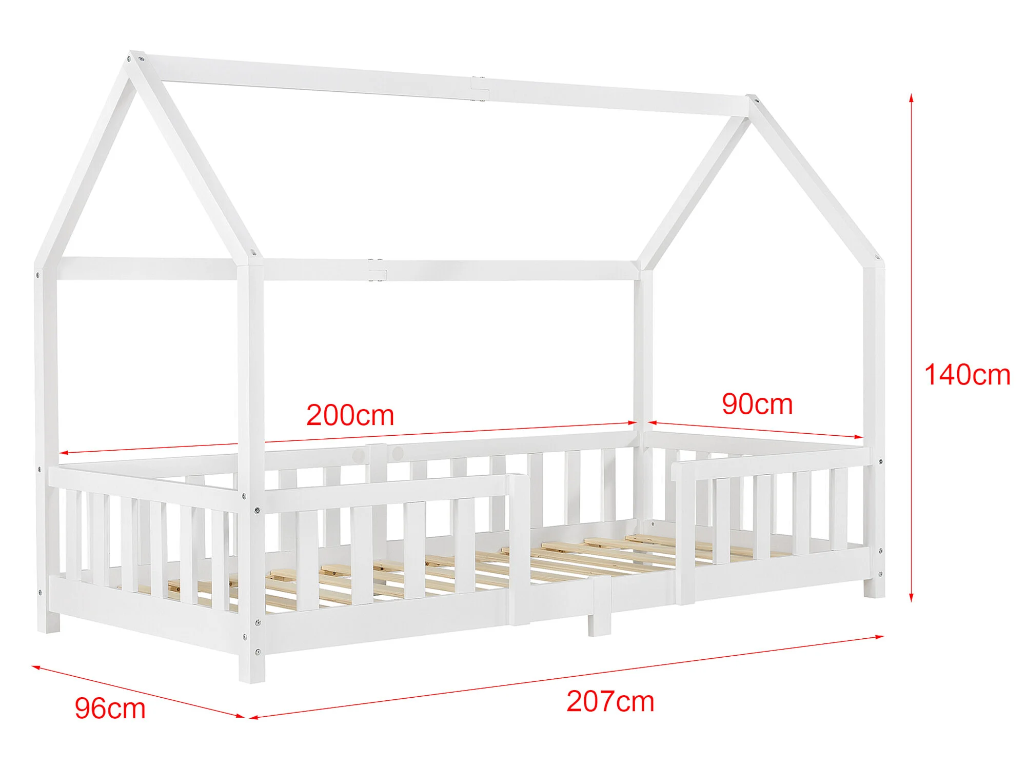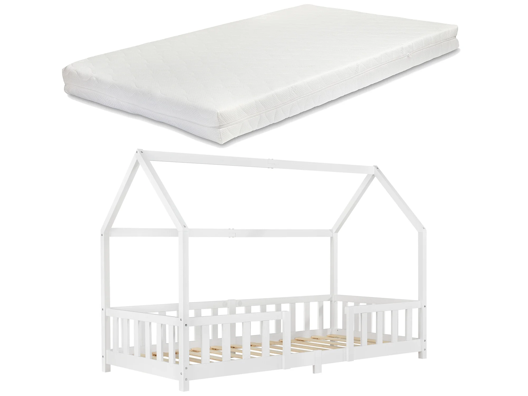 Lit D'enfant Forme Maison Sisimiut Avec Matelas À Mousse À Froid 200X90 Cm Blanc