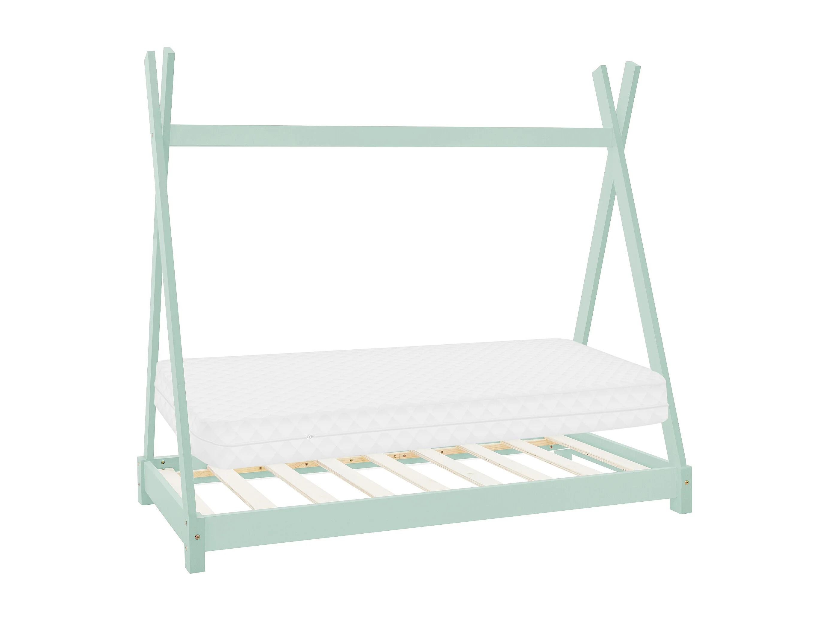 Lit d'enfants Tipi 80x160 cm menthe style indien cadre en bois de pin massif matelas hypoallergénique housse amovible respirant et sommier à lattes