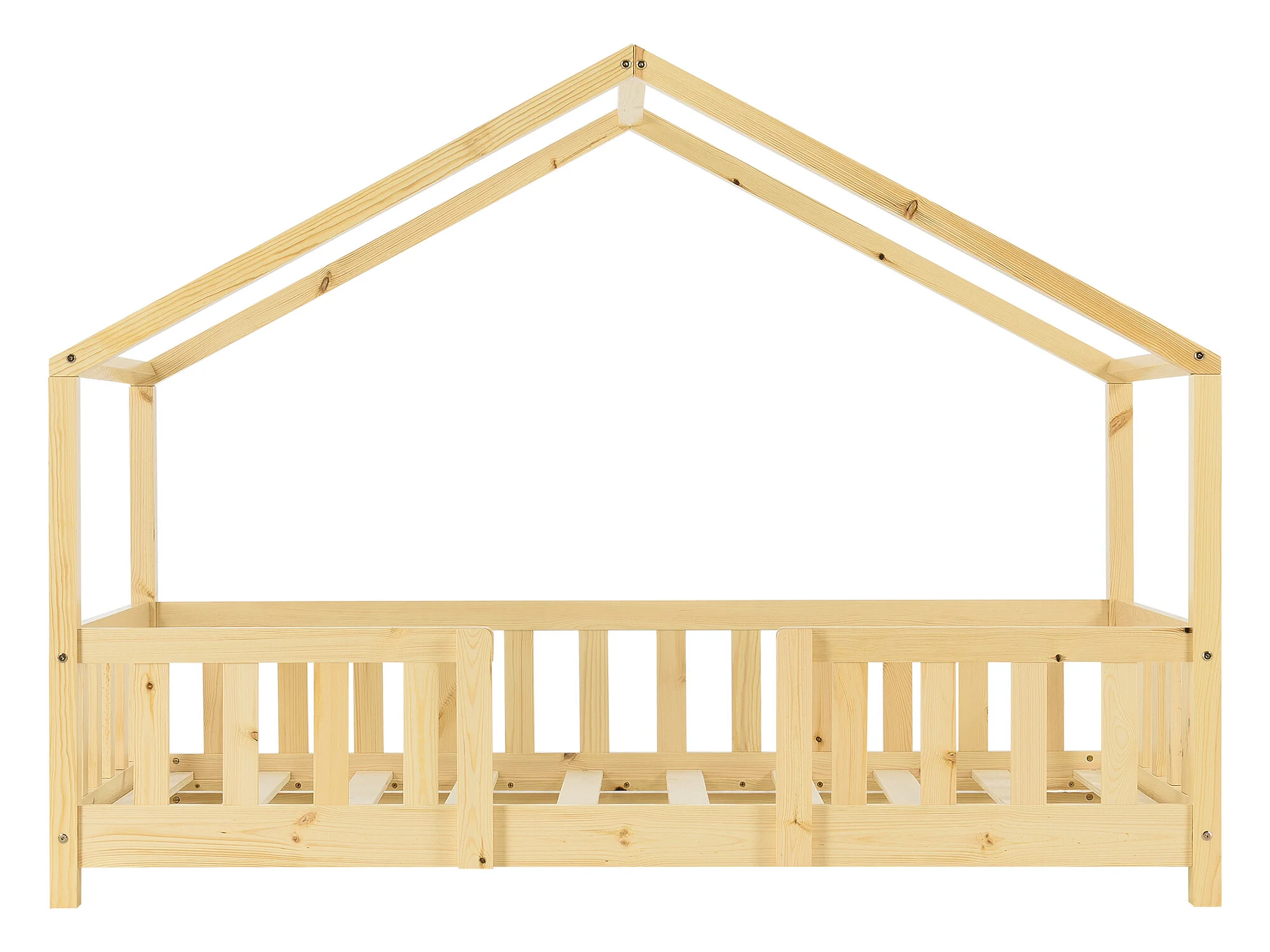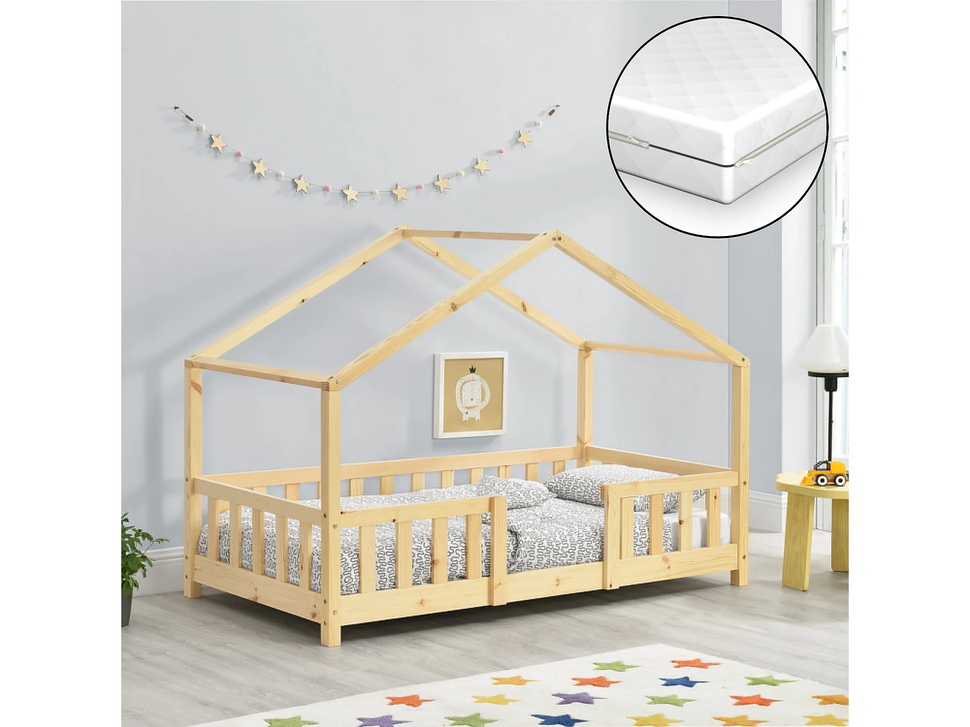 Lit D'enfant Treviolo Forme Maison Avec Matelas Orthopédique 140 X 70 Cm Bois Naturel