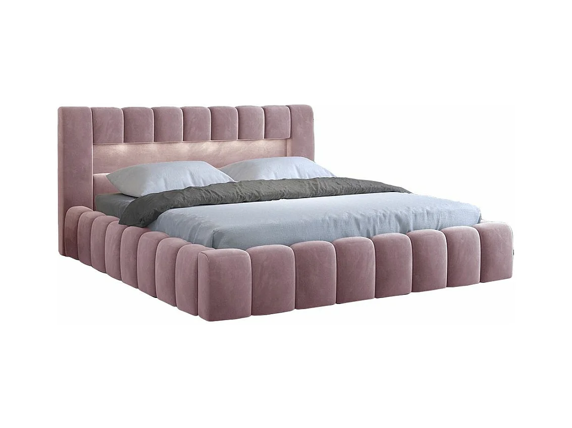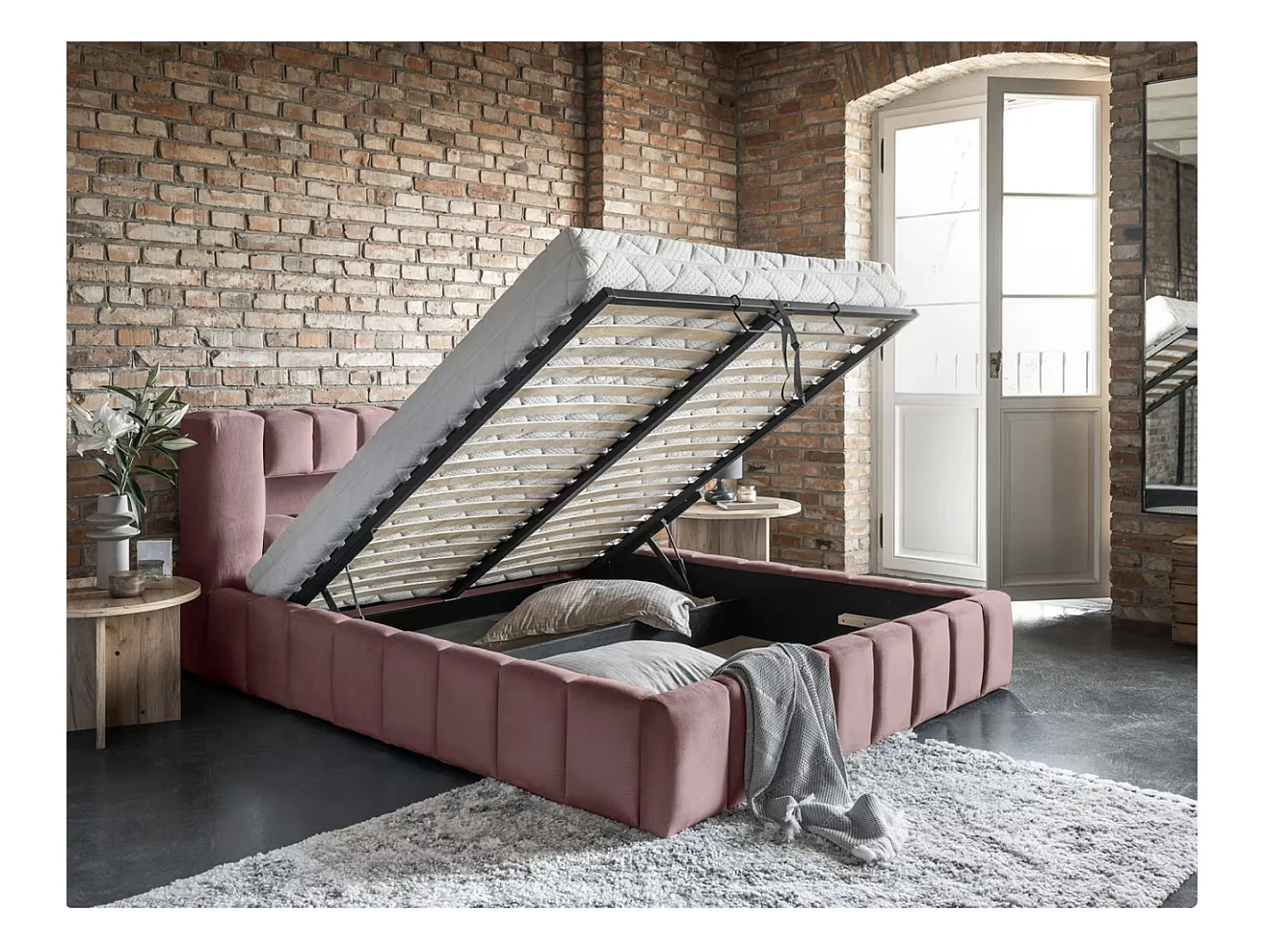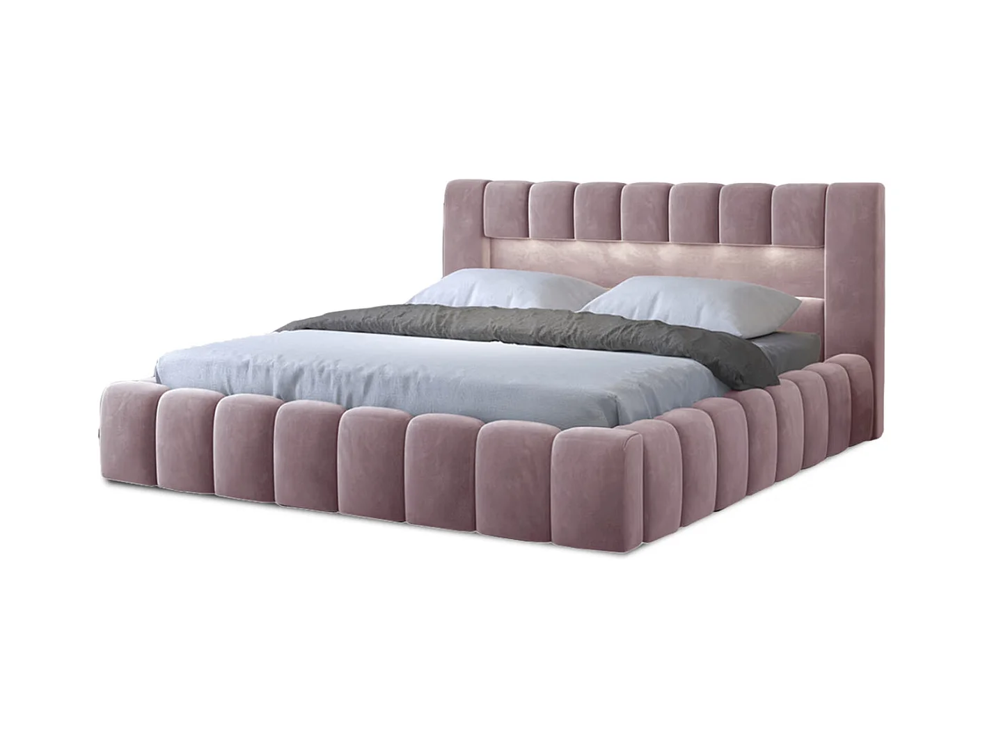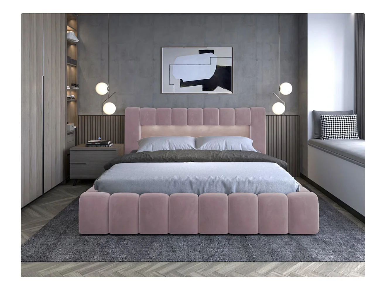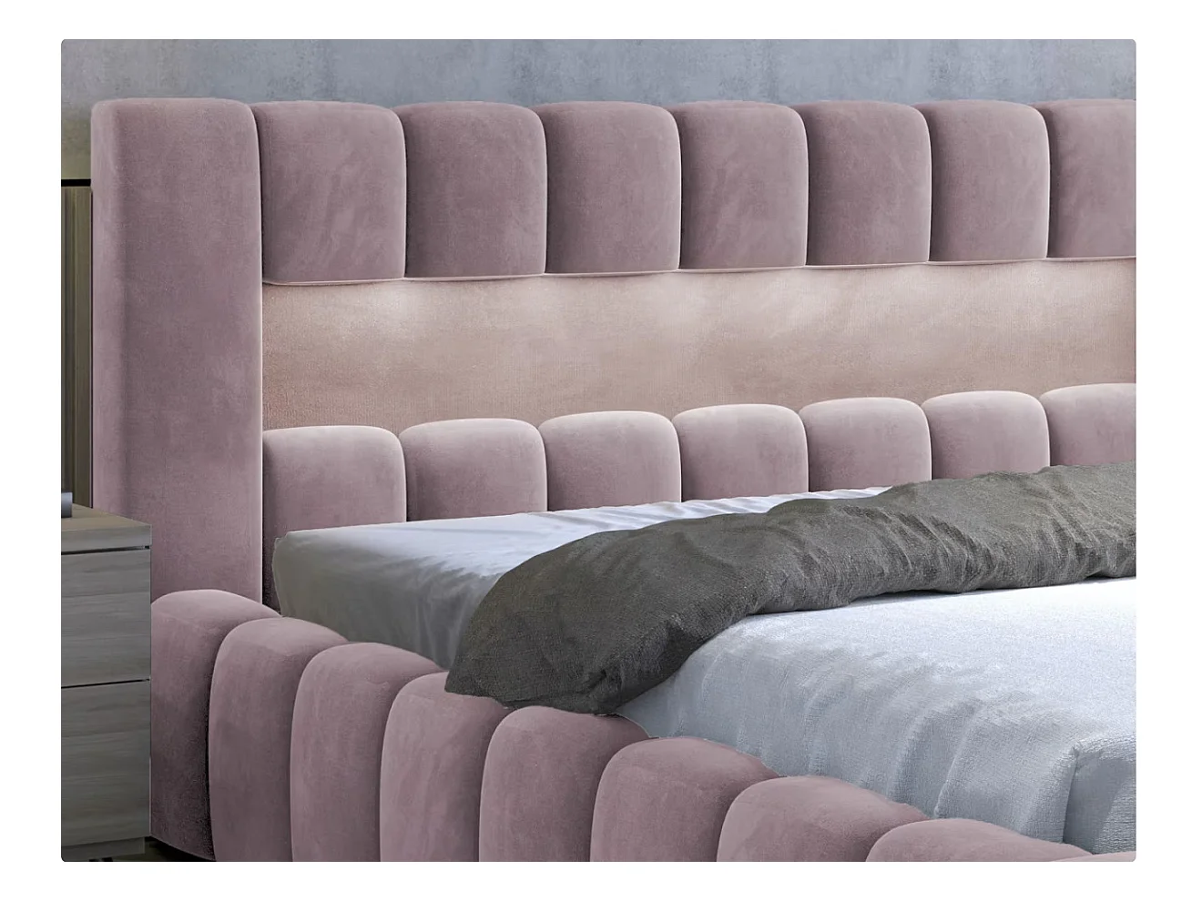 Lit coffre Luto prestige - Design tapissé velours et Led-Couleur Rose clair-160x200