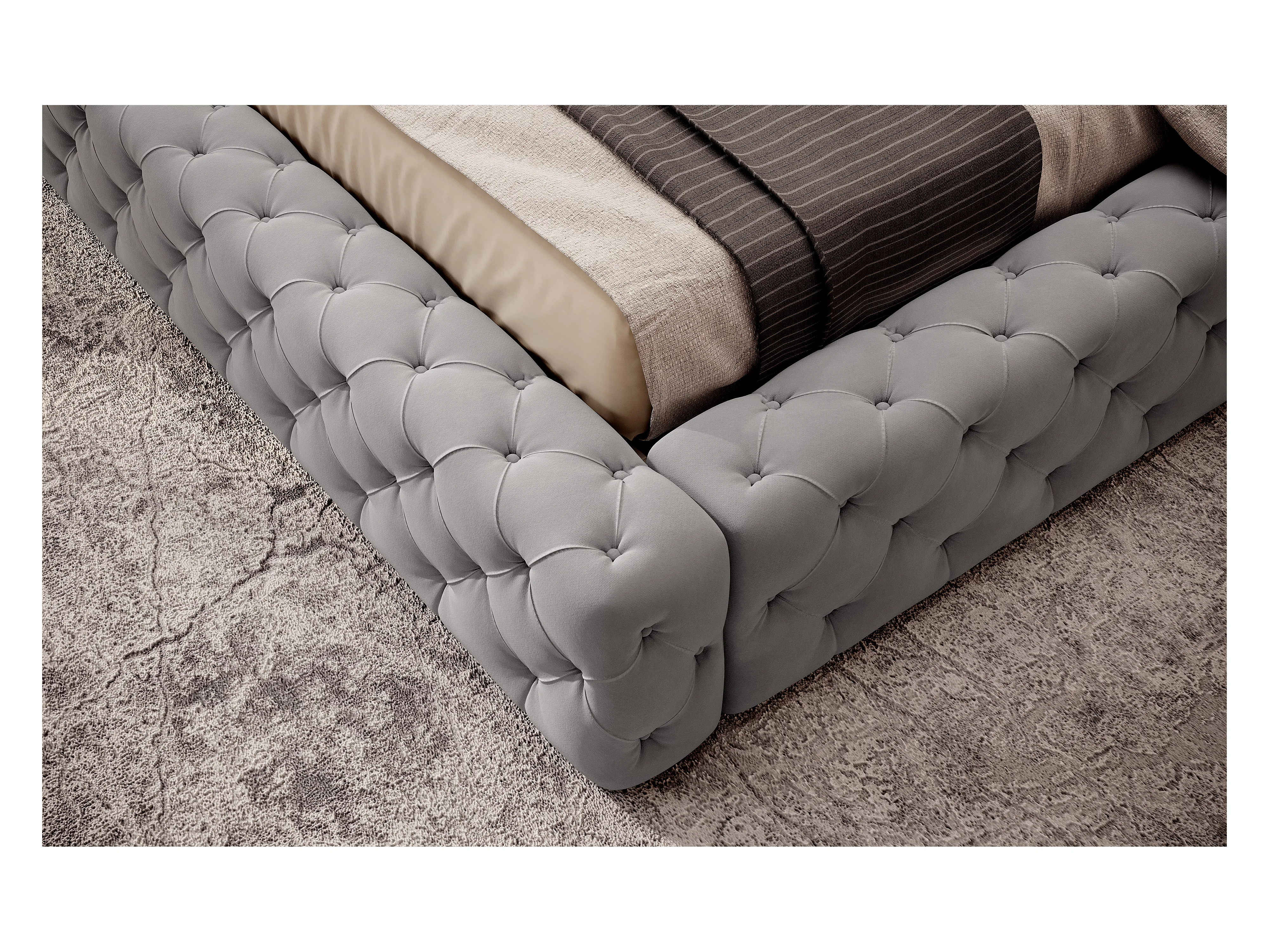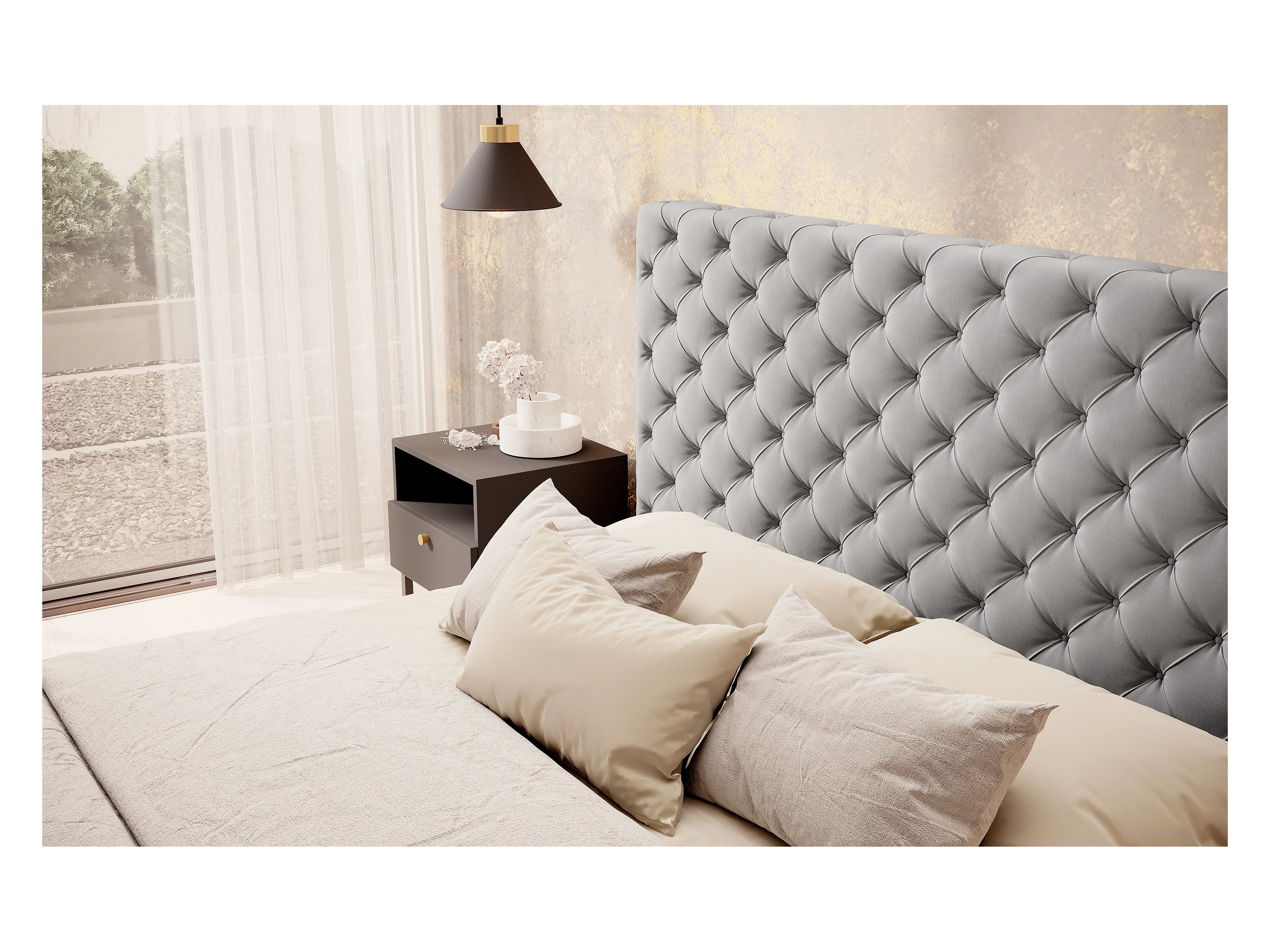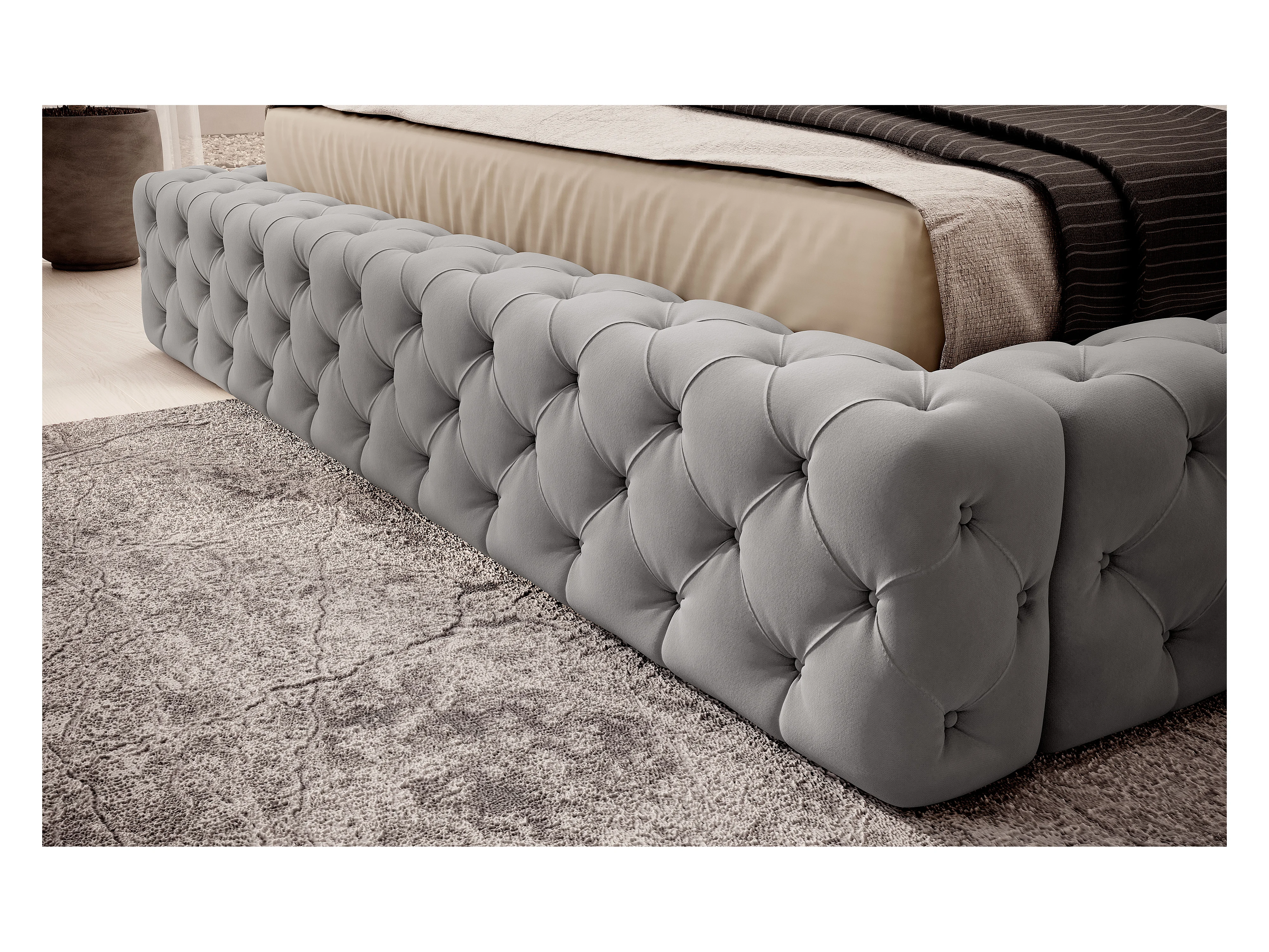 Lit design avec tête de lit et coffre capitonné velours gris Prince - 3 tailles-160x200