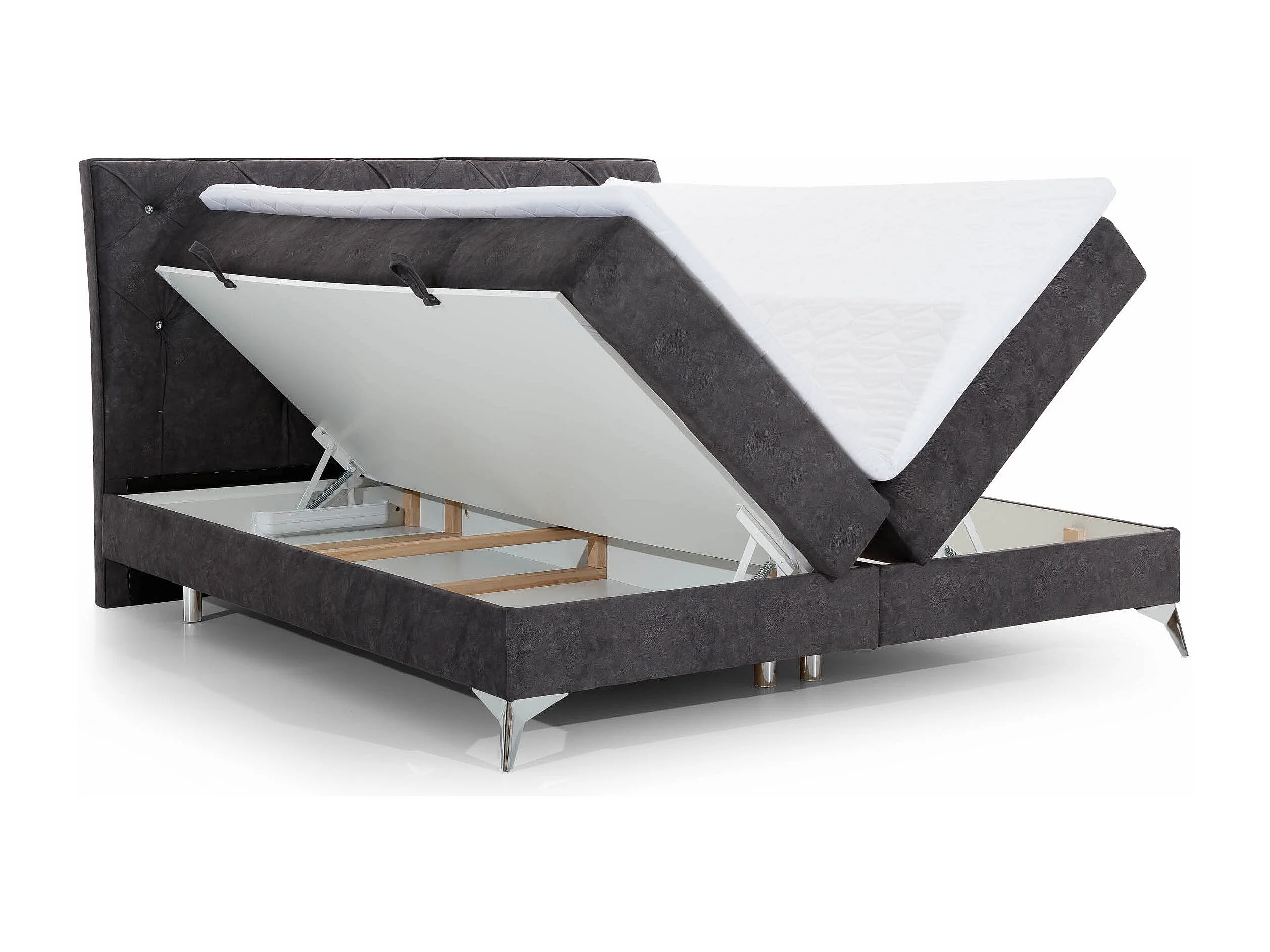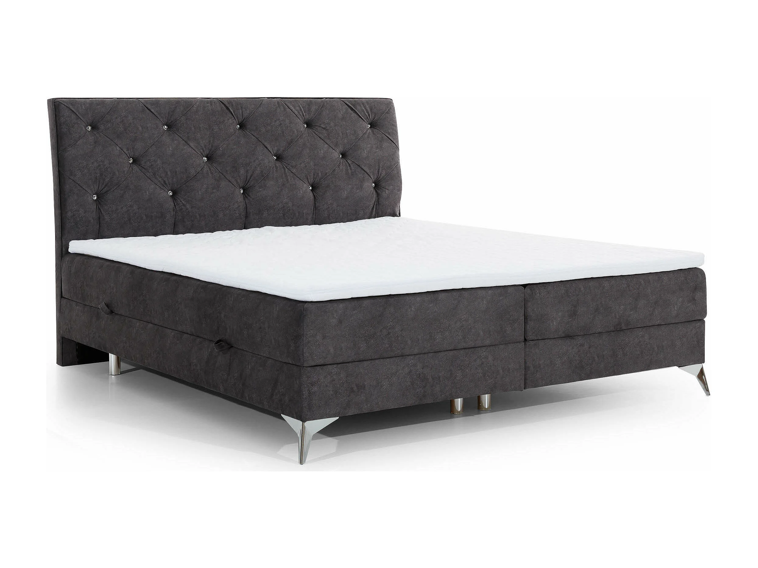 Lit design continental avec tête de lit capitonnée strass tissu gris clair Banky-160x200