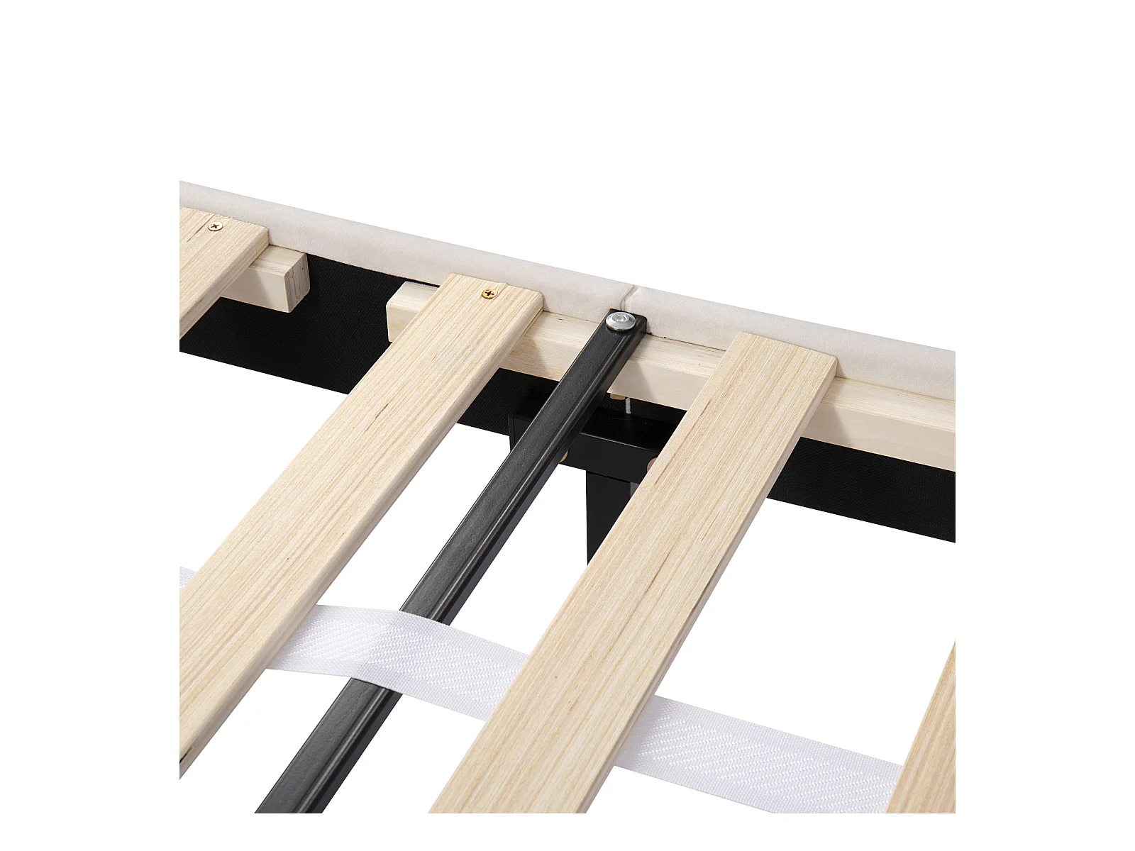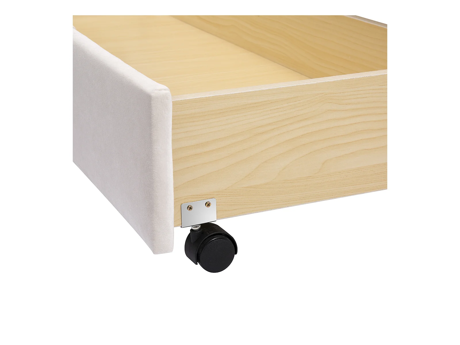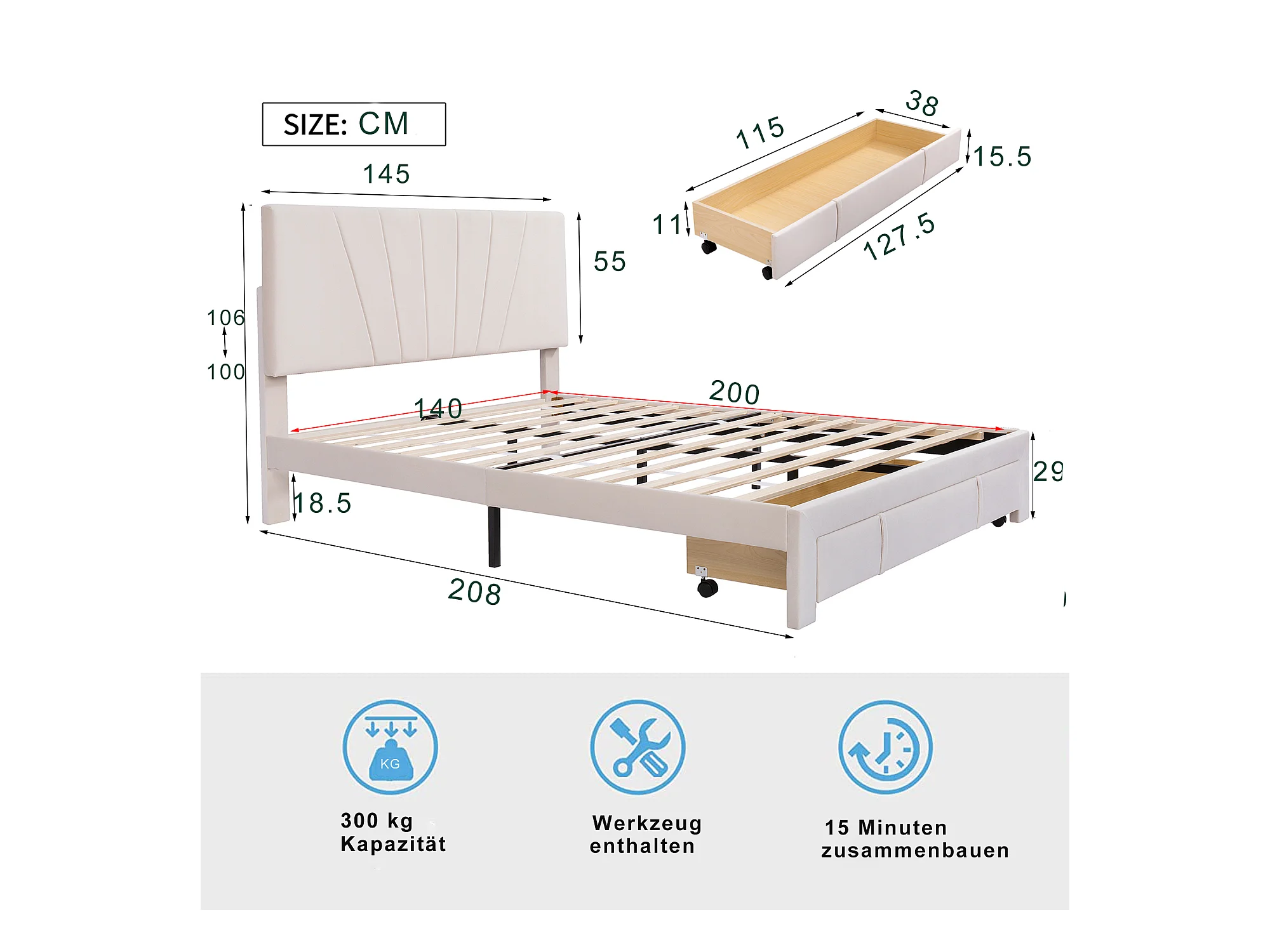 Lit double 140x200 cm - Lit tapissé avec sommier à lattes, dossier et grand tiroir - Tissu velours - Beige