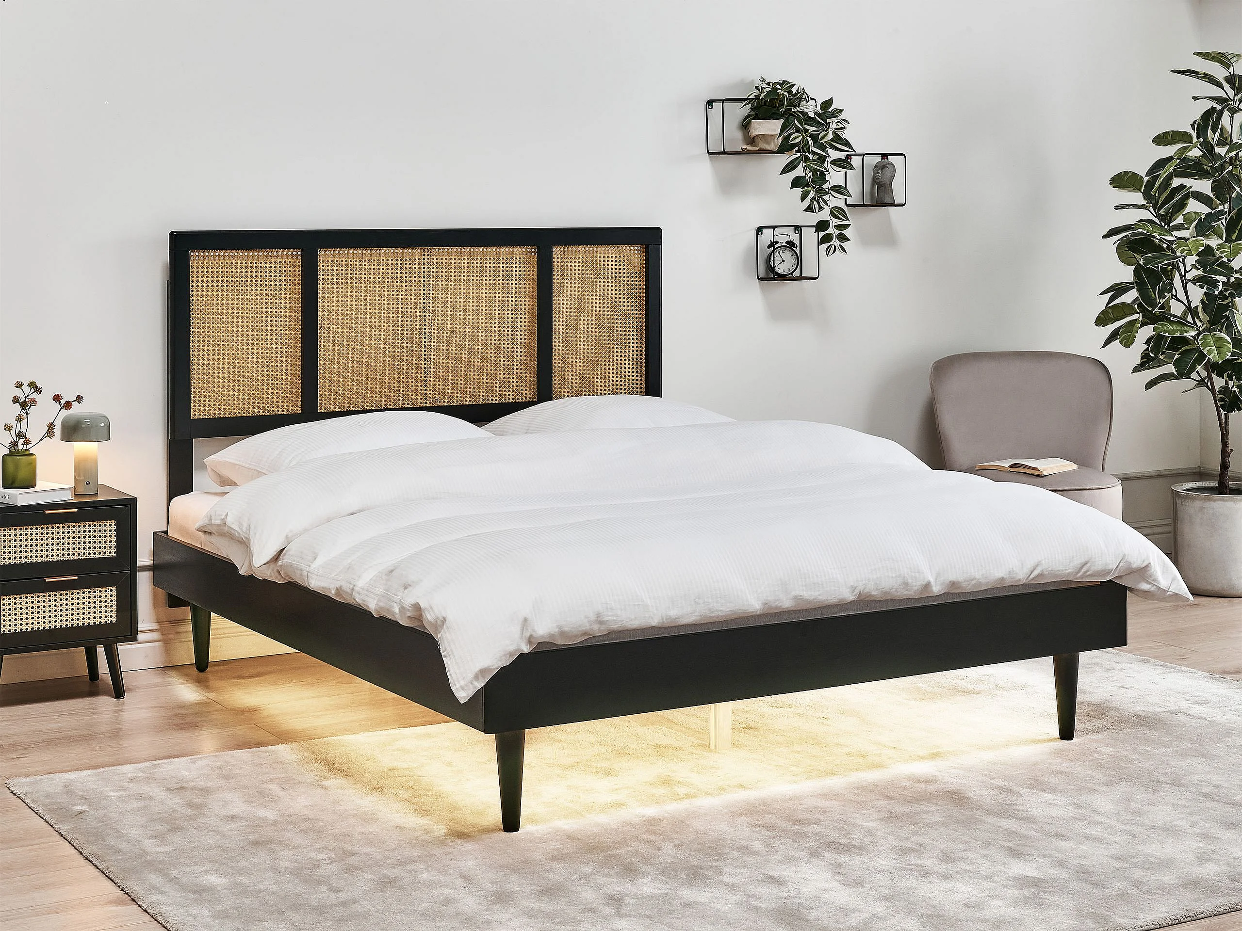 Lit avec LED Rotin AURAY 160 x 200 cm Noir