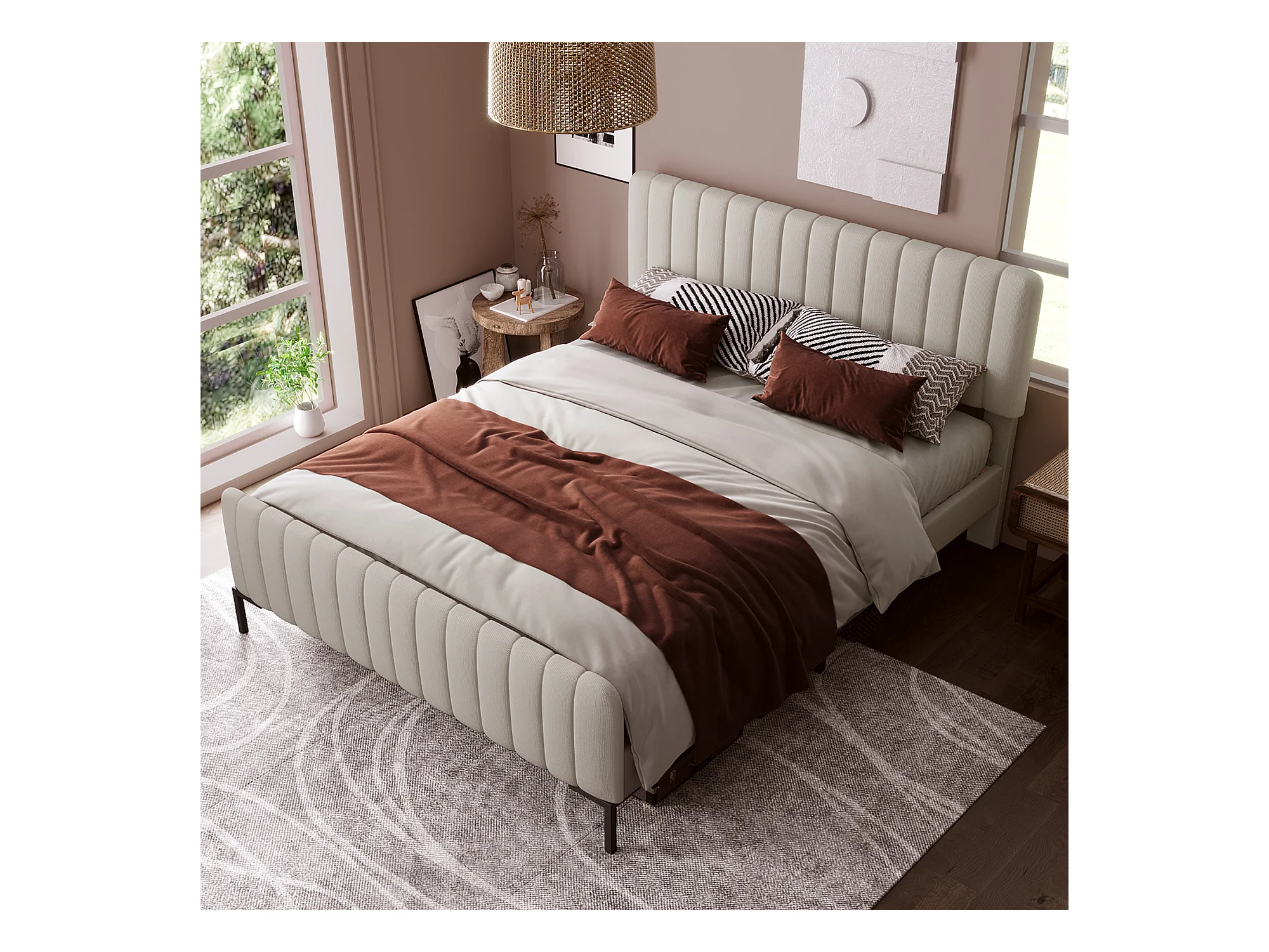 Lit double 180 x 200 cm avec tête de lit réglable, cadre en lin gris-beige et lattes en pin