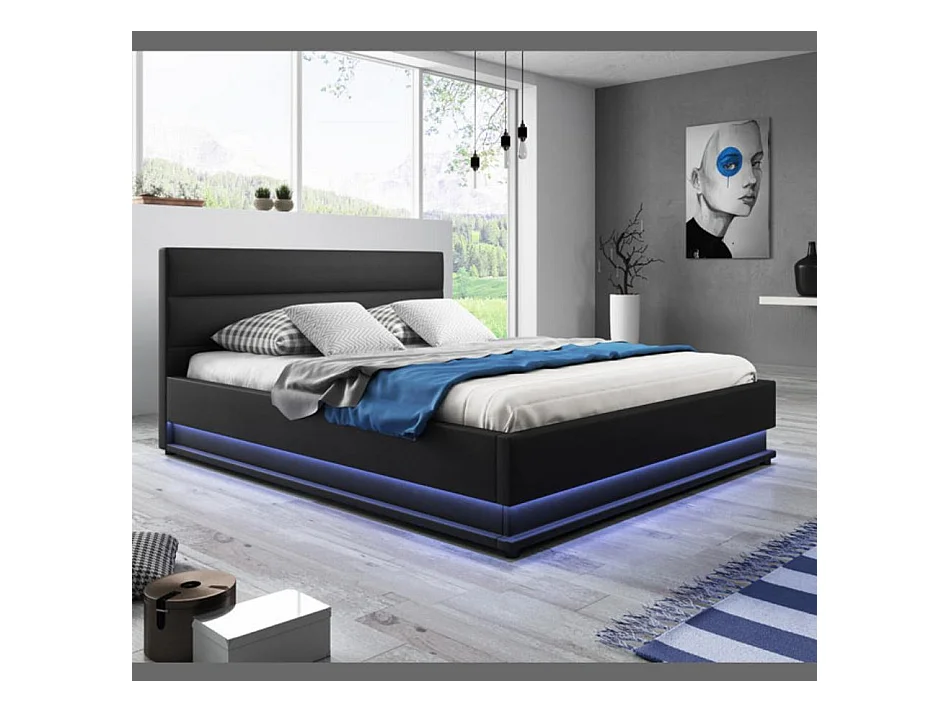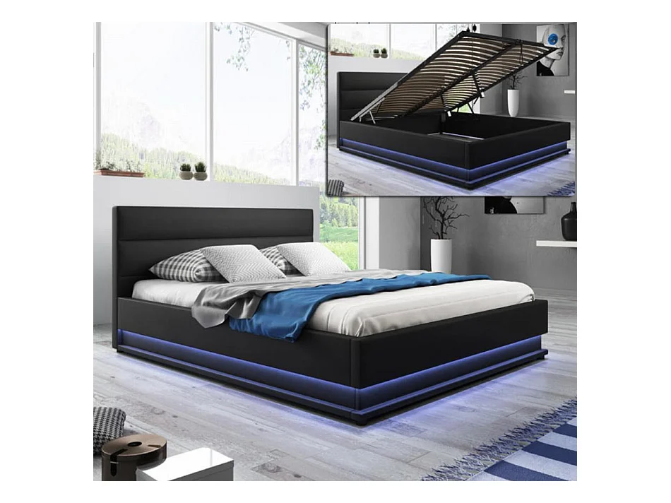 Lit double avec coffre 150x190cm en Noir avec LED Nitas