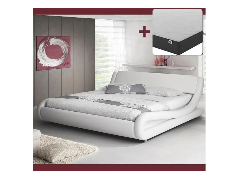 Lit double avec Matelas 140x190cm en Blanc avec LED Alessia
