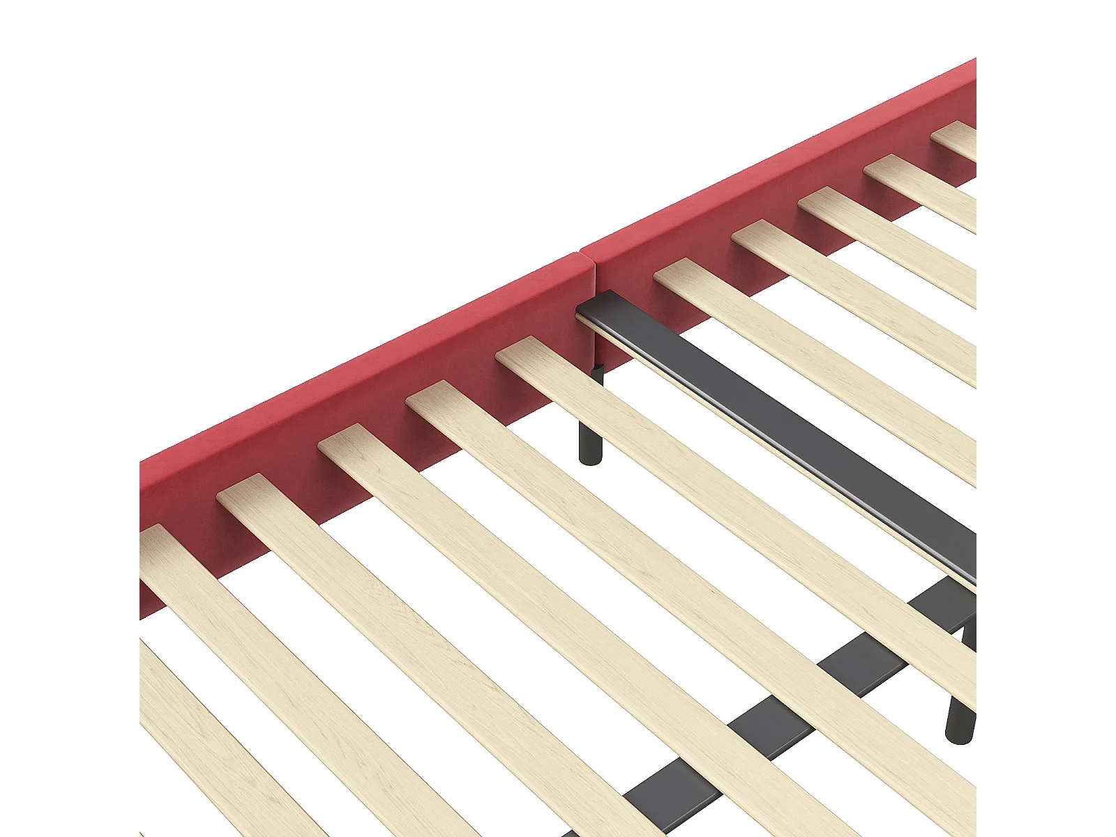 Lit Double Capitonné 140 X 200 Cm Avec Sommier à Lattes, Velours, Rouge