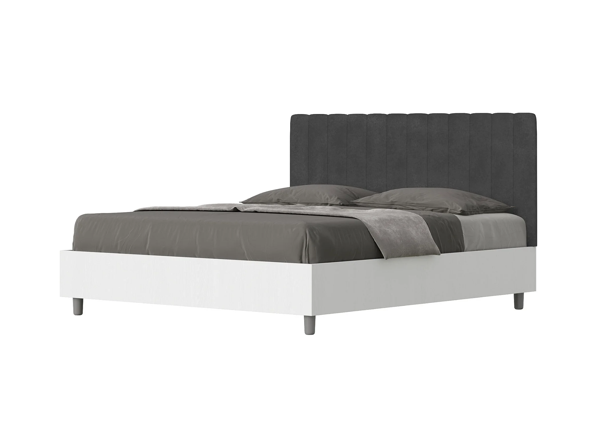 Lit double conteneur 160x190 frêne blanc avec tête de lit microfibre gris Kaia