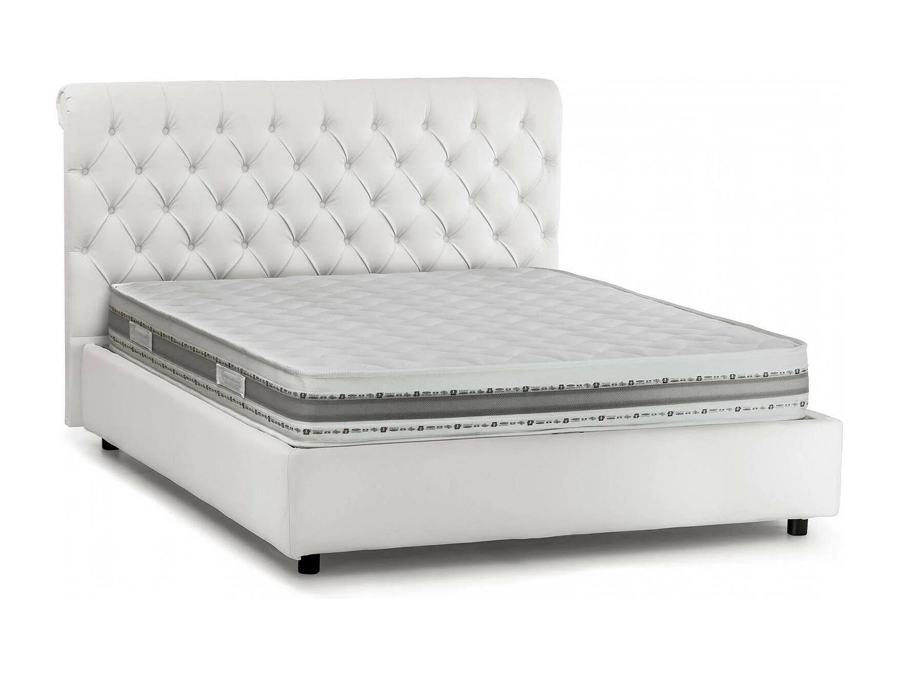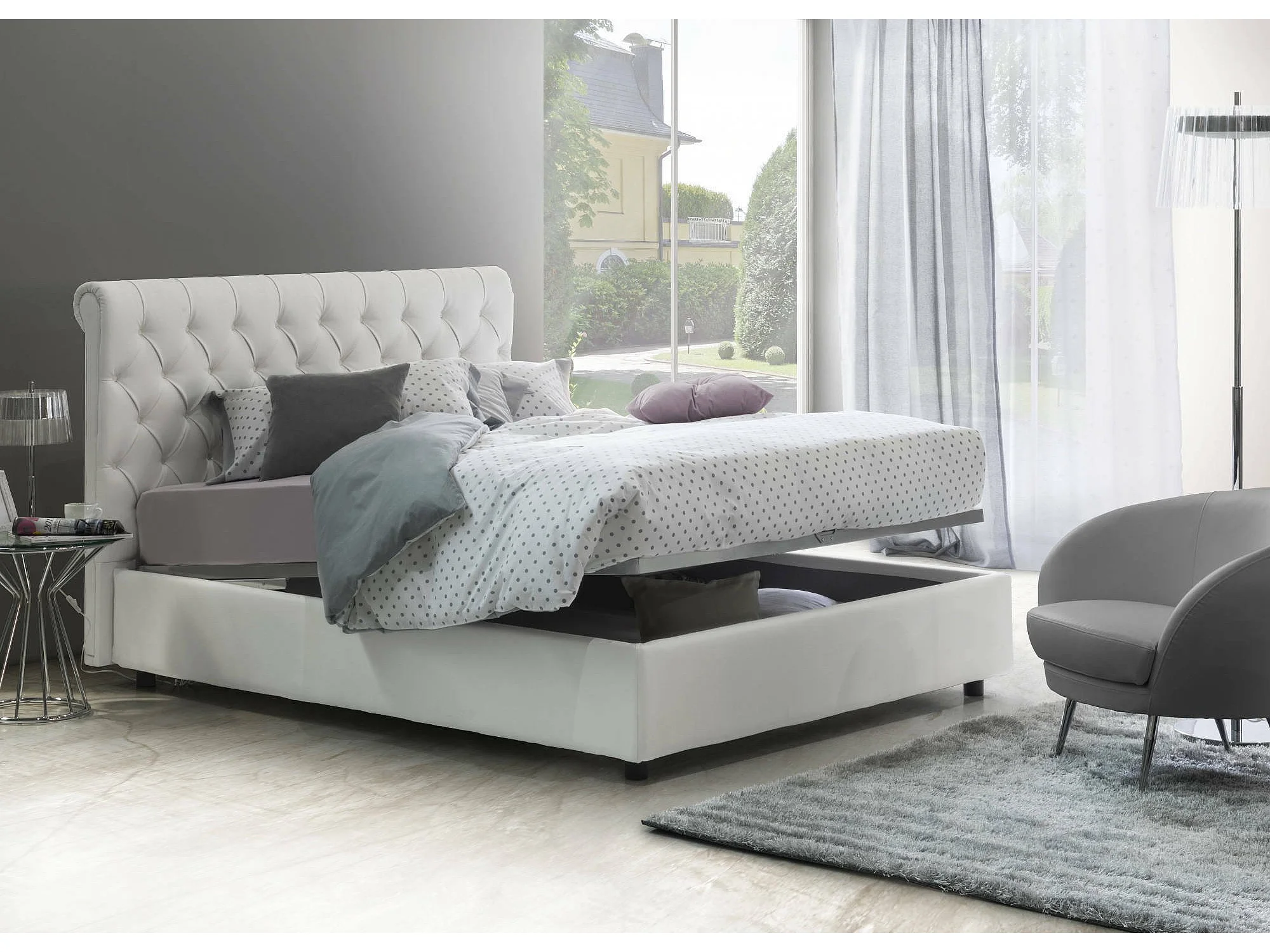 Lit double Dbeca, Lit coffre et tête de lit en éco-cuir, 100% Made in Italy, Ouverture frontale, Blanc, avec matelas 160x190 cm inclus