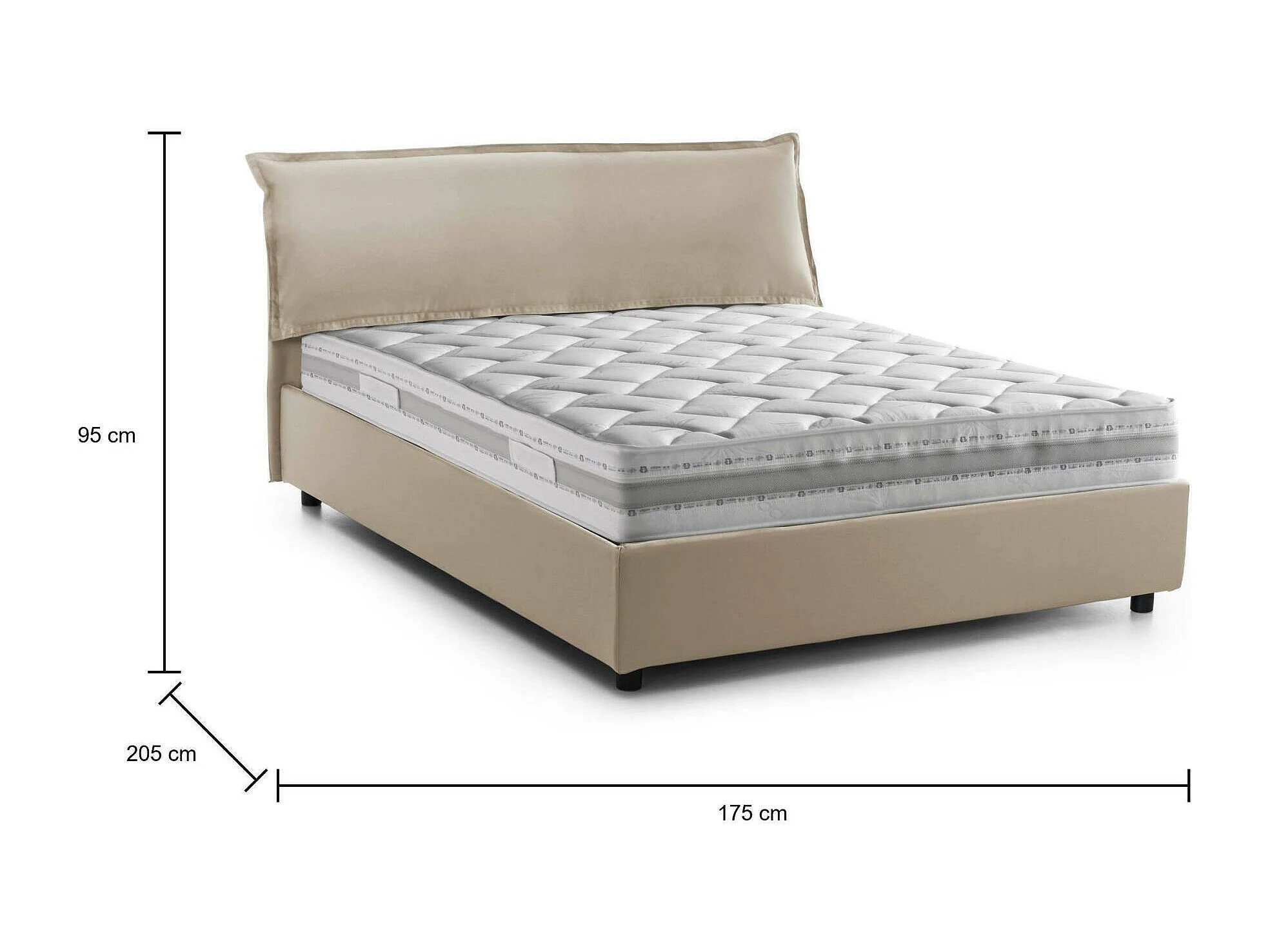 Lit double Dbianc, lit coffre avec revêtement amovible avec tête de lit rembourrée et cadre de lit coffre, 100% Made in Italy, avec matelas 160x190 cm inclus, Beige