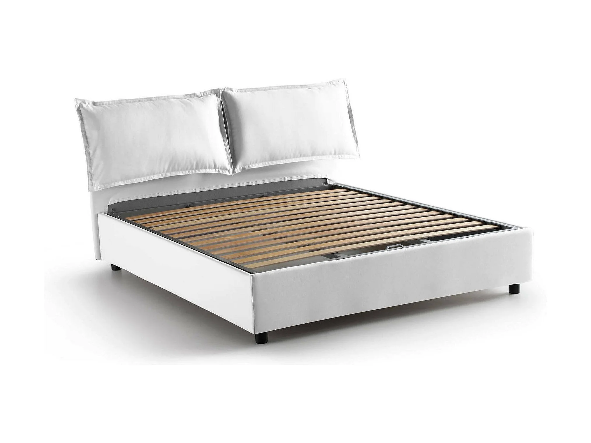 Lit double Dcaprar, Lit coffre avec revêtement en tissu, 100% Made in Italy, Ouverture frontale, adapté pour matelas 160x190 cm, Blanc