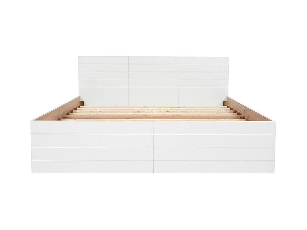 Lit double en bois 140 x 200 cm avec 2 tiroirs, ensemble chêne + blanc