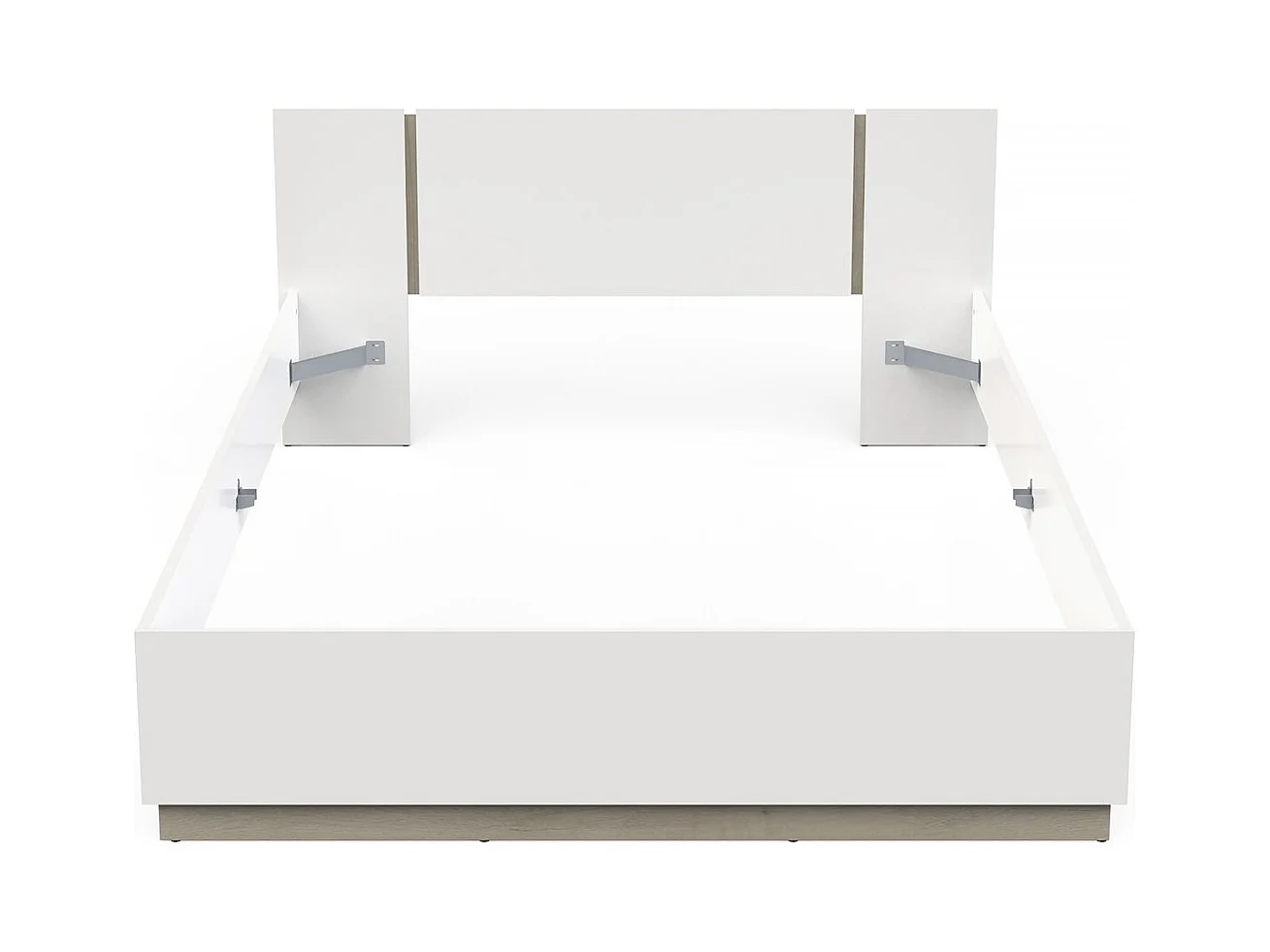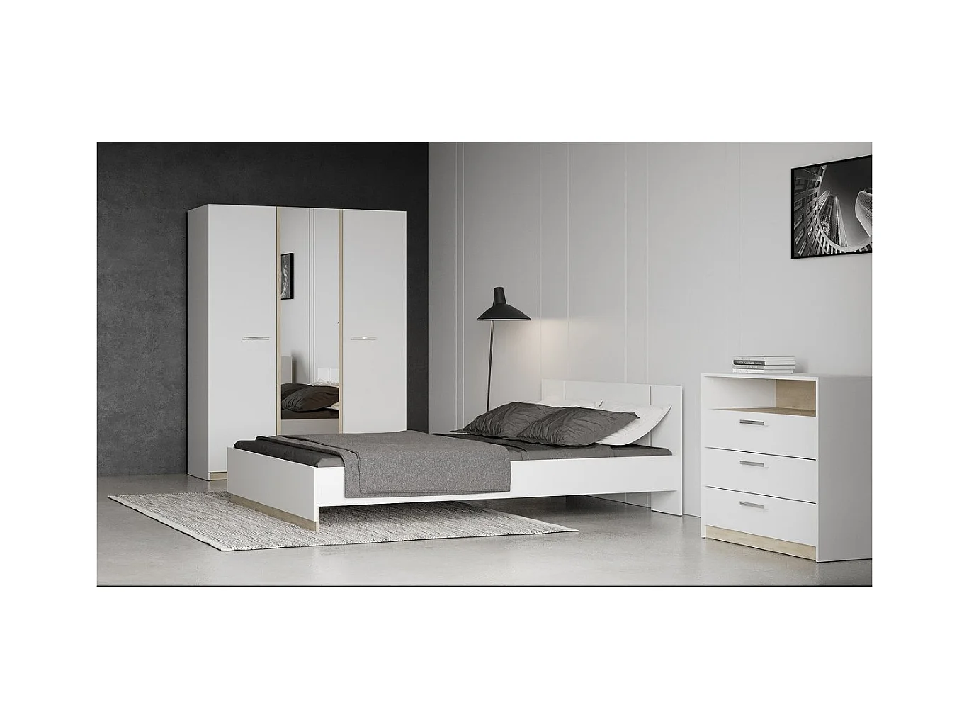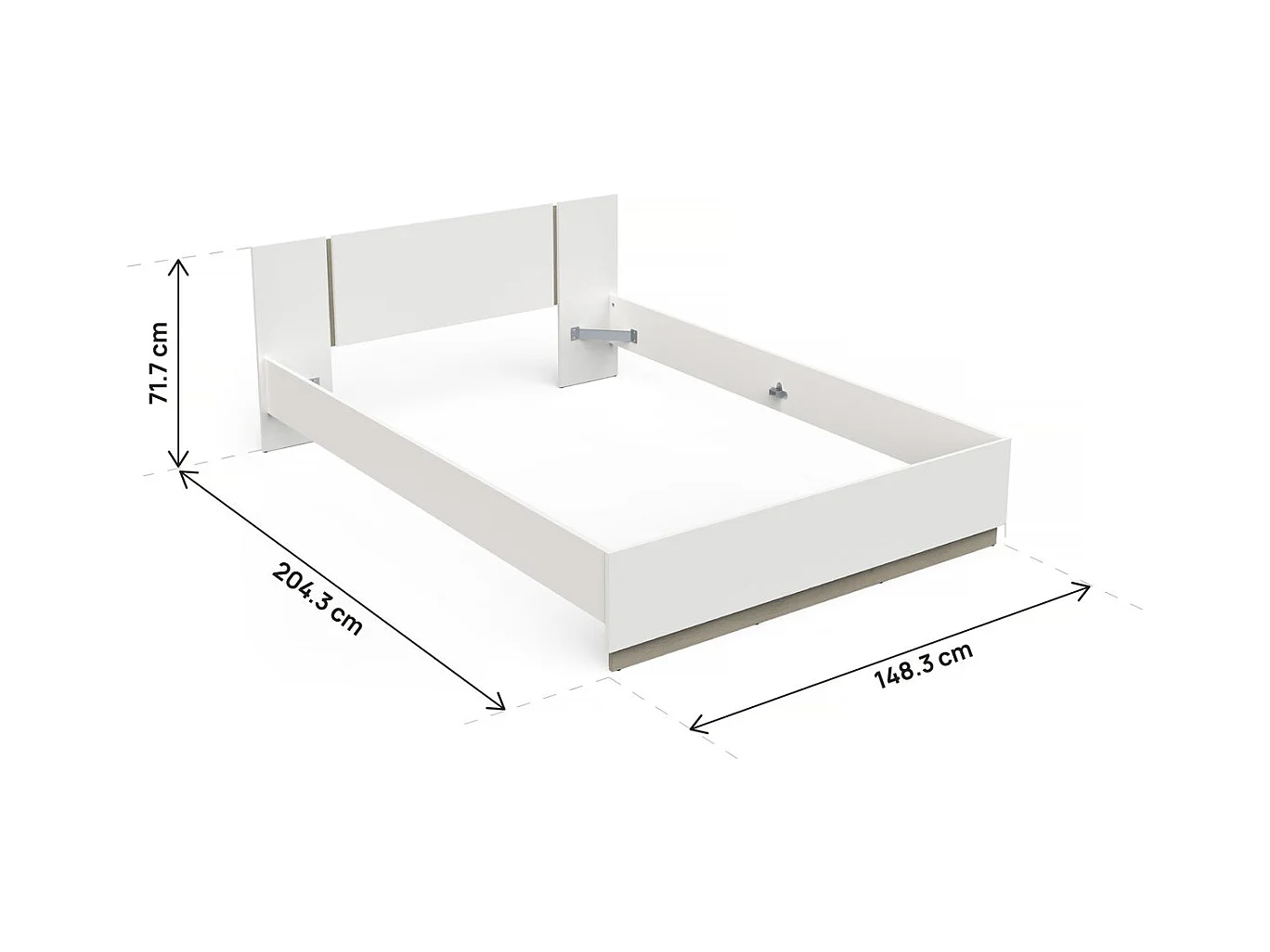 Lit adulte 140x200cm minimaliste, cadre en pin, blanc, sans matelas