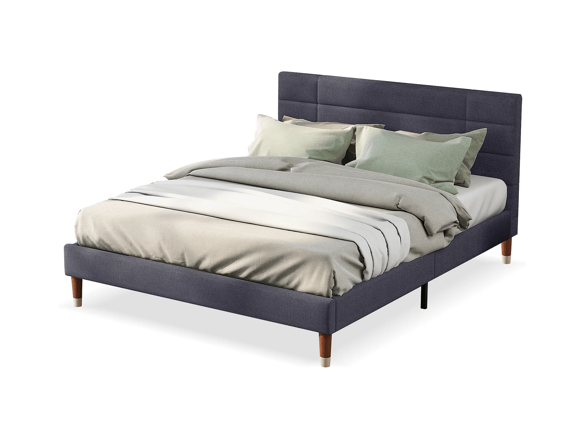 Lit double en lin gris 140x200 cm avec tête de lit, cadre rembourré et lattes, design classique et pratique