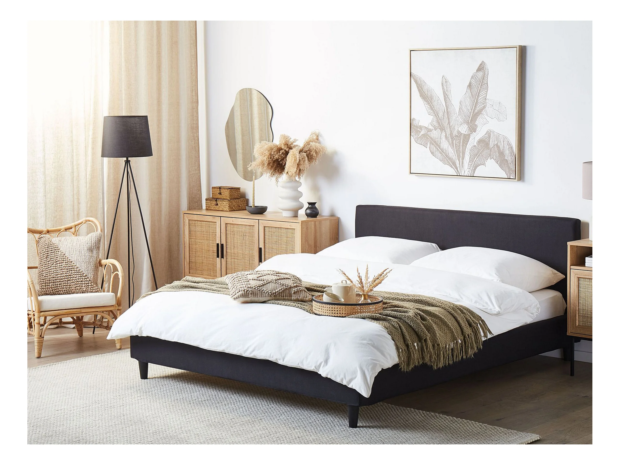 Lit avec sommier Tissu FITOU 160 x 200 cm Noir