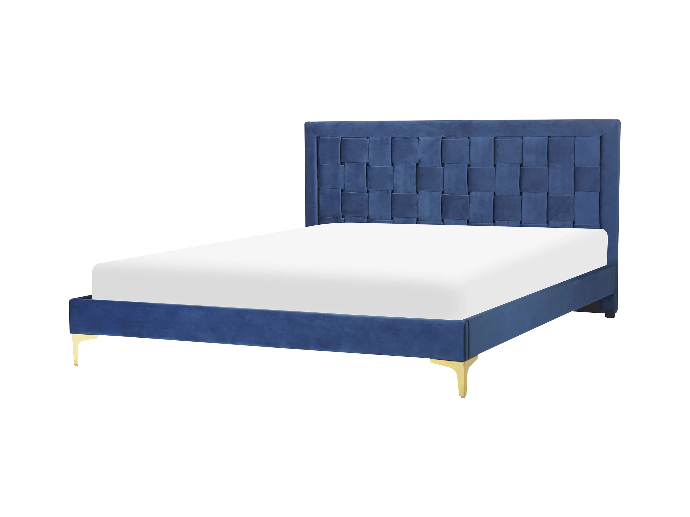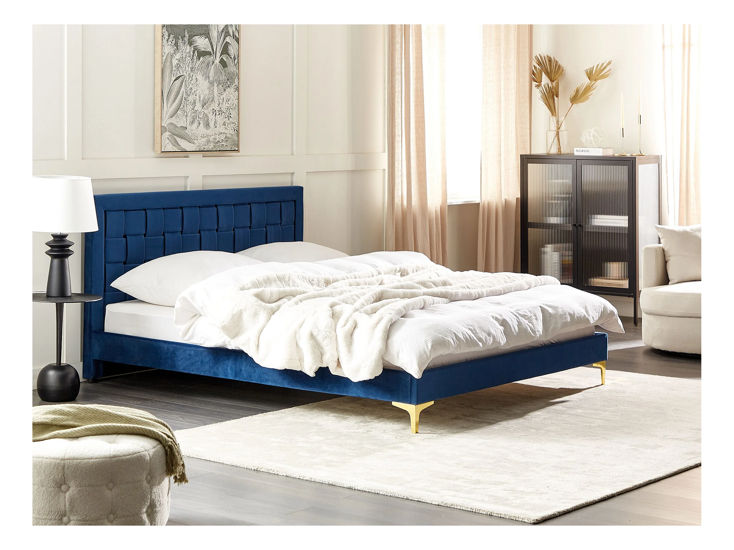 Lit avec sommier Velours LIMOUX 160 x 200 cm Bleu marine