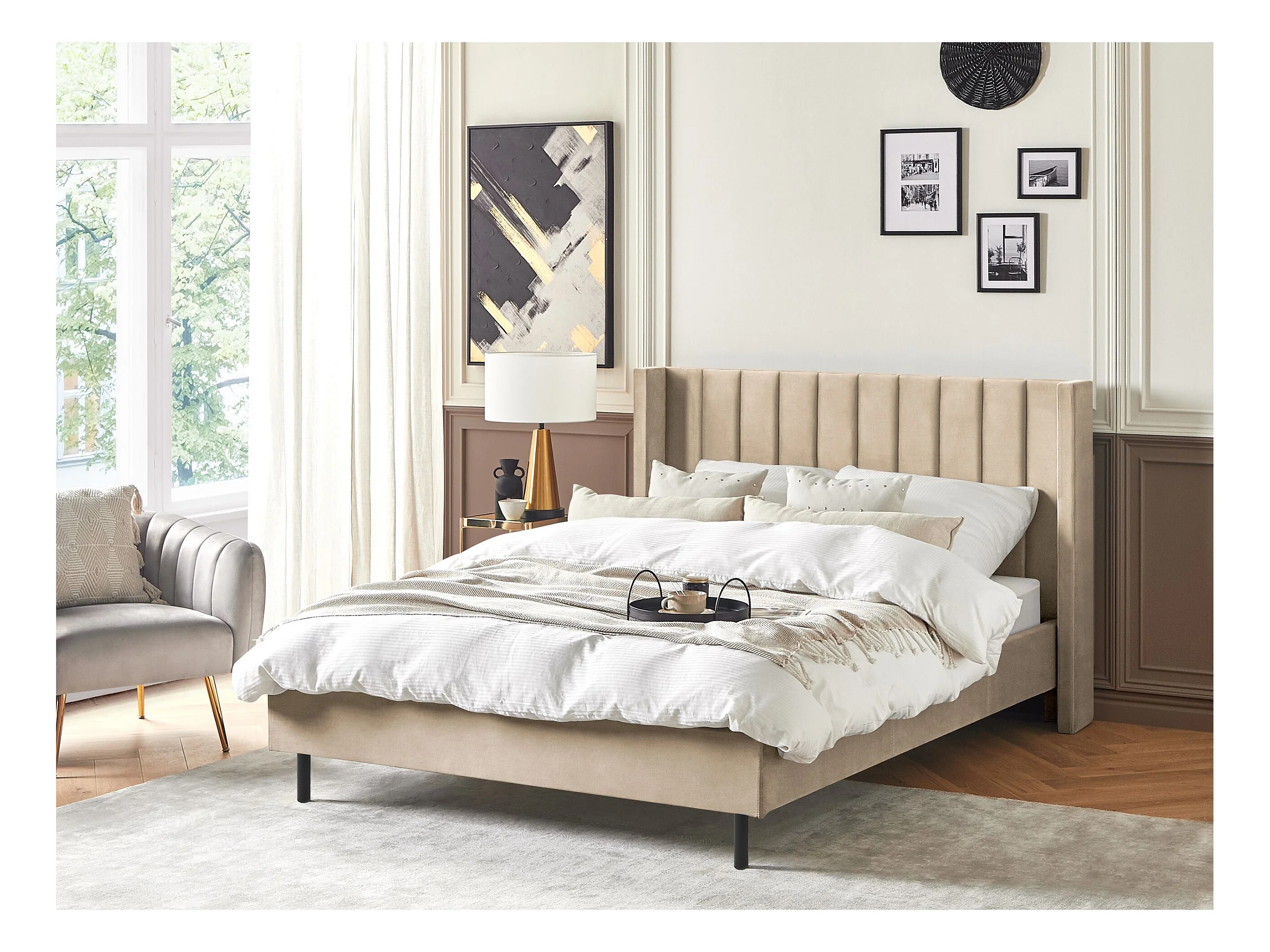 Lit avec sommier Velours VILLETTE 140 x 200 cm Beige